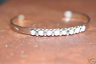 Handcrafted with sterling silver and created opal. 3/16” wide, and opening is about 1 ½ inches. Singed Zuni 06 and LS.