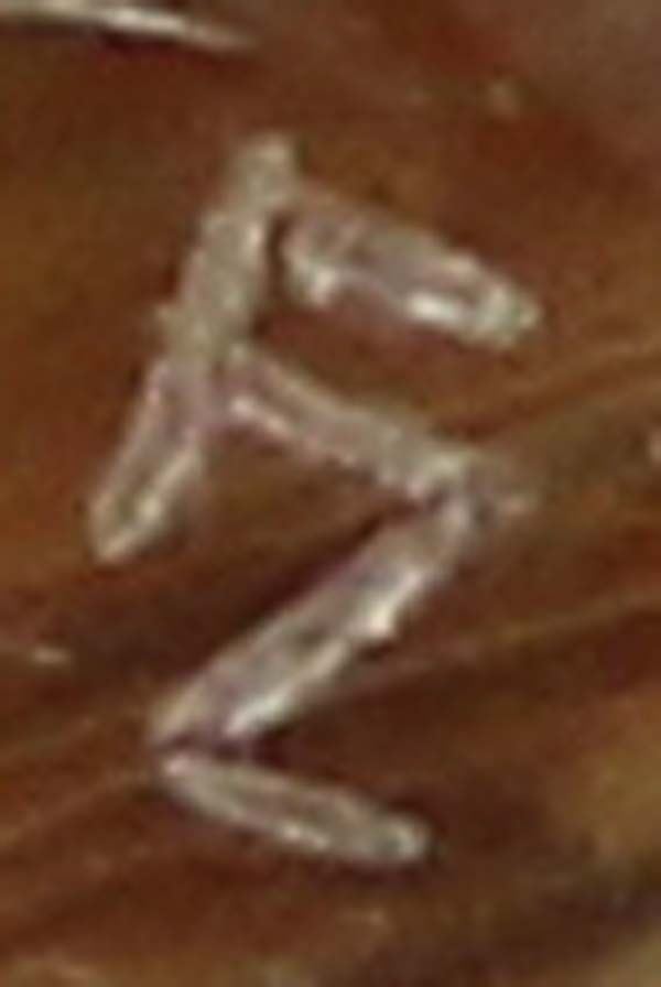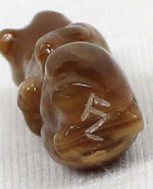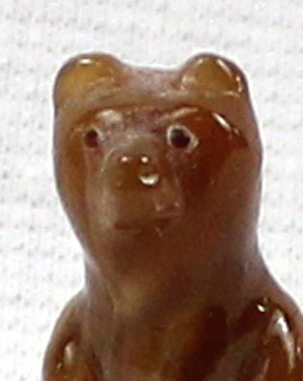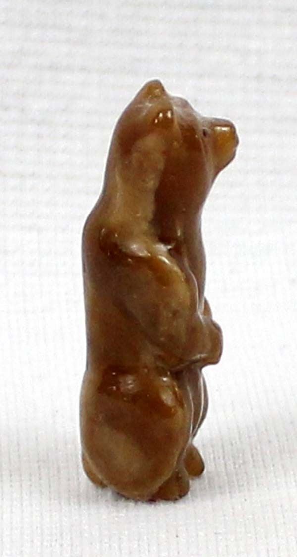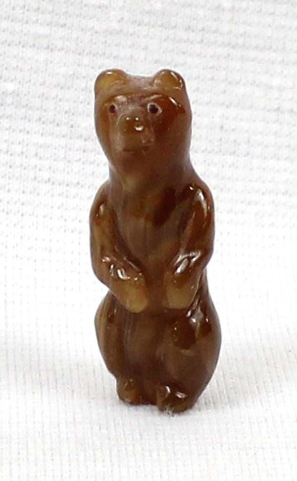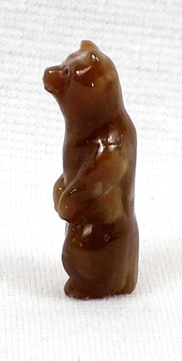 Native American Zuni Nutria Travertine Bear Fetish by Fred Bowannie, measures 1 1/8''H x .25''W, his hallmarked FL is on the bottom