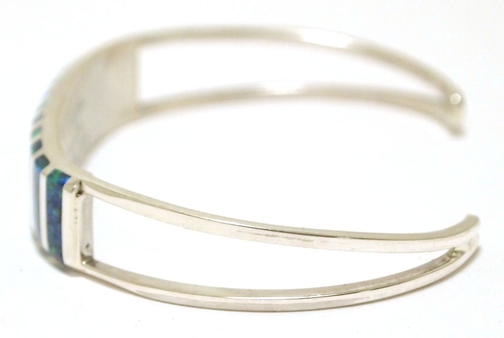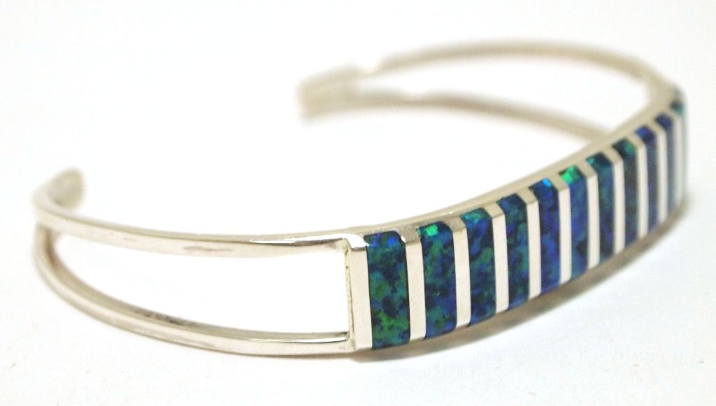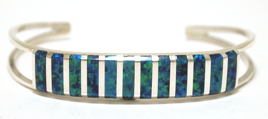 Zuni Ocean Blue Opal Inlay Sterling Silver Cuff Bracelet - Cheryl Siutza