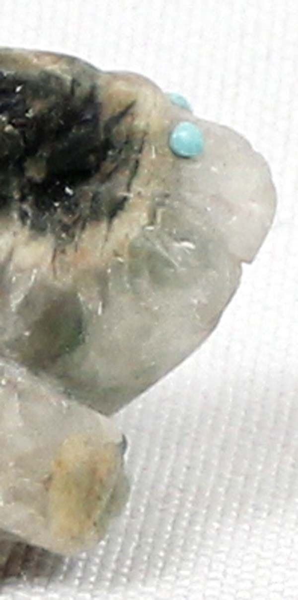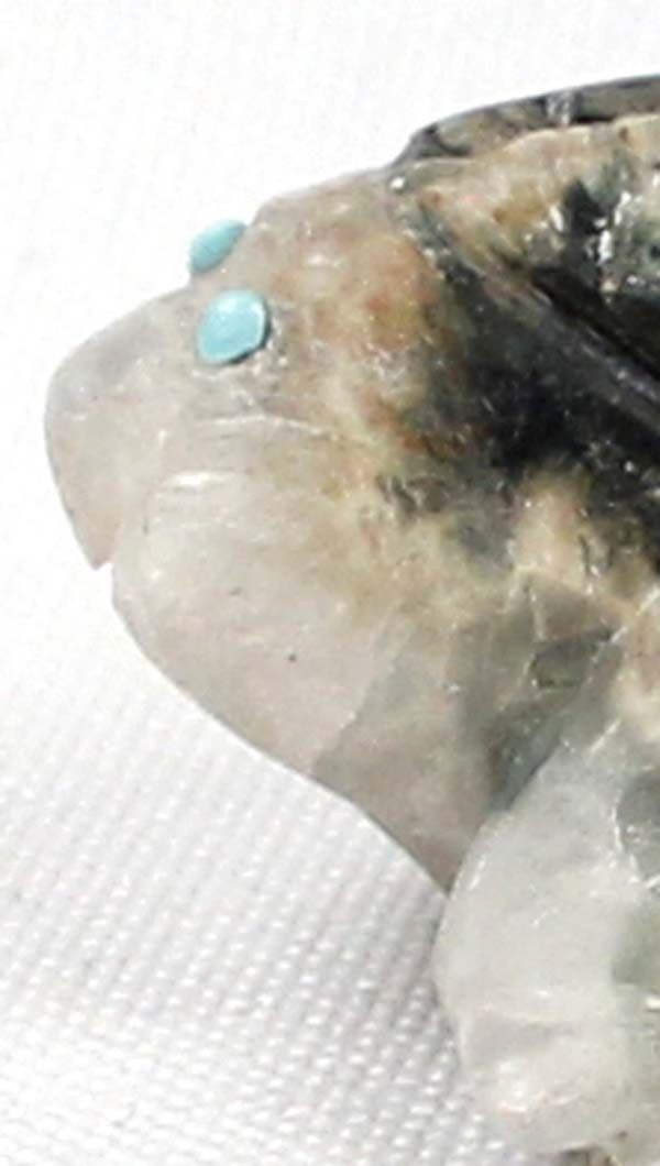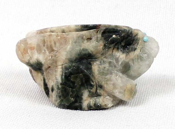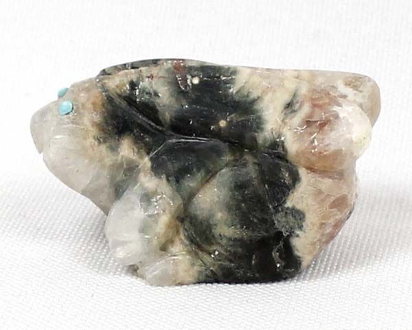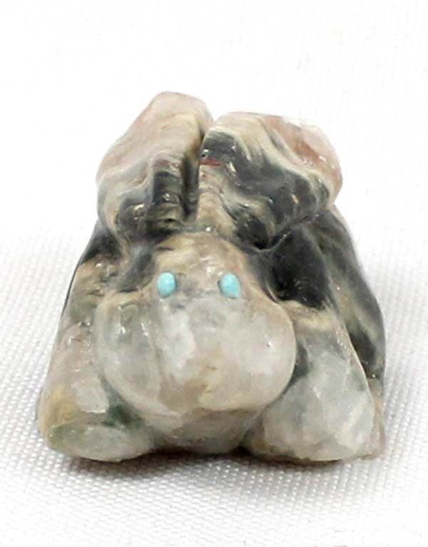 Native American Zuni Ocean Jasper Rabbit Fetish by Ron Laahty, measures 1'' x 1.5'', turquoise eyes