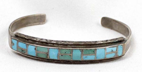 Native American Zuni Old Pawn Sterling Inlay Turquoise Bracelet, inside measures 6'' which includes the gap x .5''W, gorgeous older turquoise