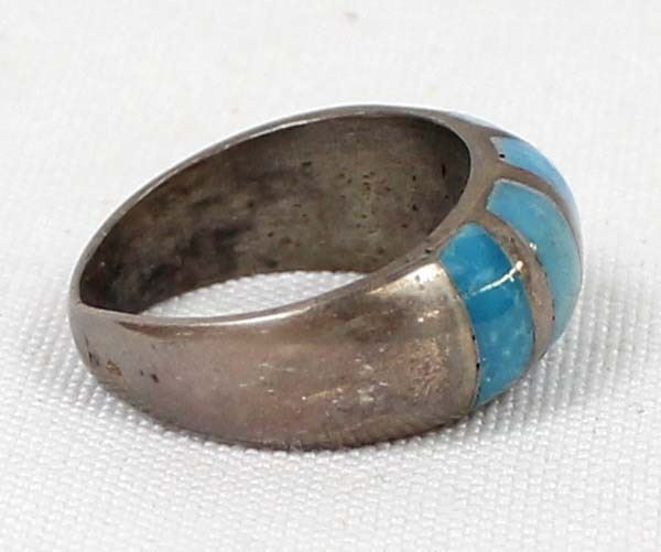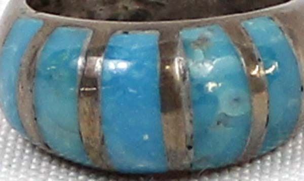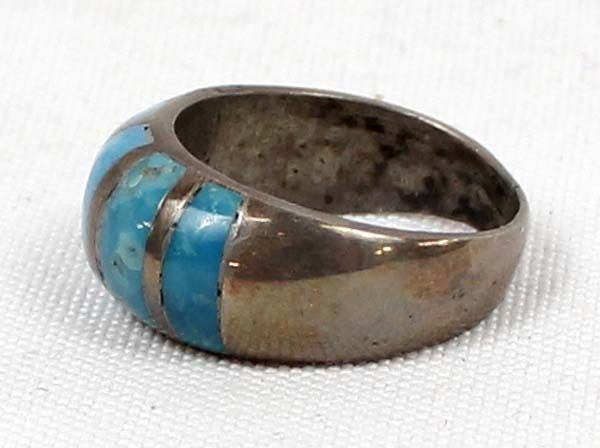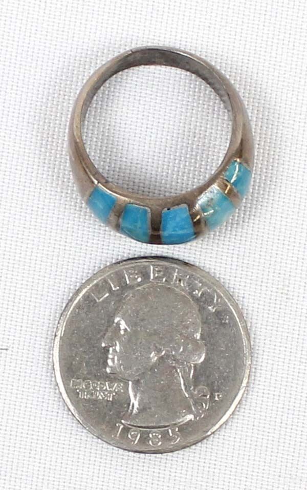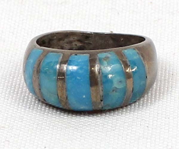 Zuni Old Pawn Sterling Inlay Turquoise Ring, 8.5