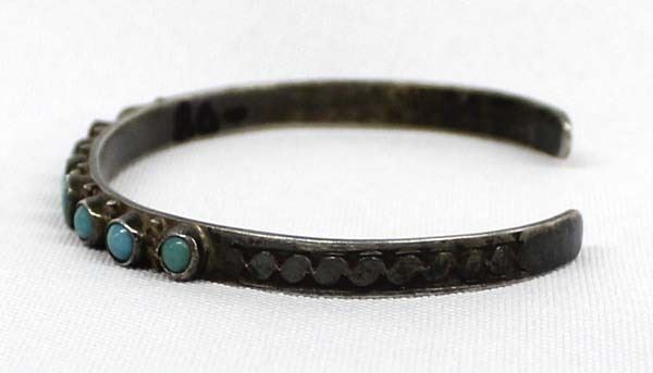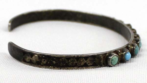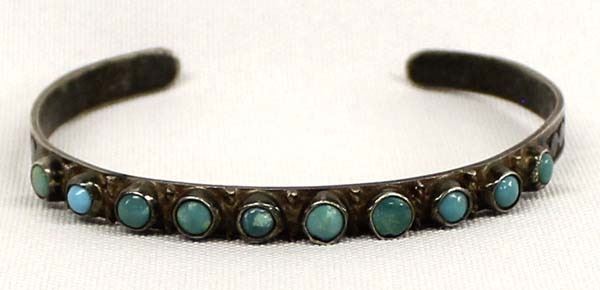 Native American Zuni Old Pawn Sterling Turquoise Bracelet, inside measures 8'' which includes the opening x .25'', beautiful blue green turquoise