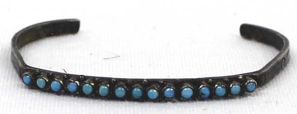 Native American Zuni Old Pawn Sterling Turquoise Cuff Bracelet, inside measures 5'' x 1/8''