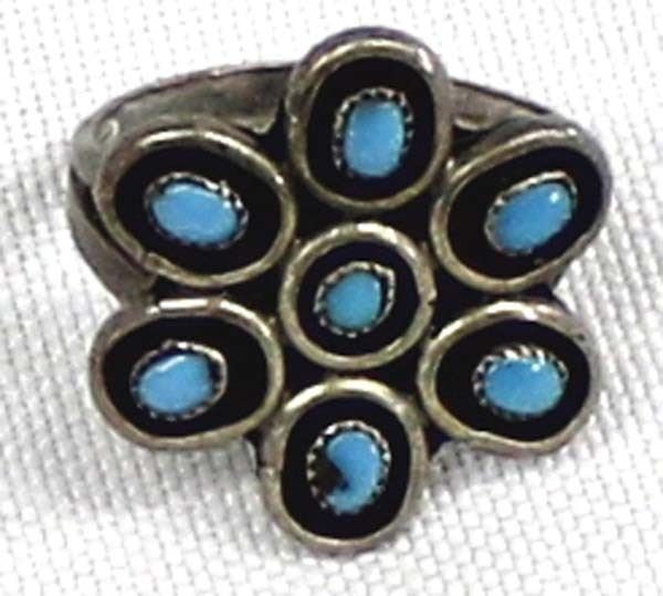 Native American Zuni Old Pawn Sterling Turquoise Ring, Size 6.5, measures .75''D