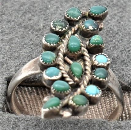 Zuni Old Pawn Sterling Turquoise Ring, Size 9