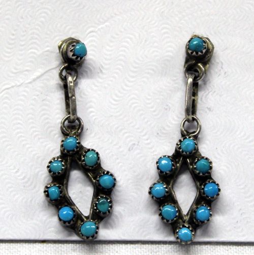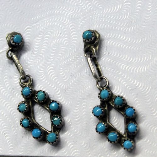 Zuni Old Pawn Turquoise Needlepoint Earrings. 1960's beautiful Zuni earrings, post-style, natural turquoise, needlepoint set in sterling silver. They measure 1 1/4''.