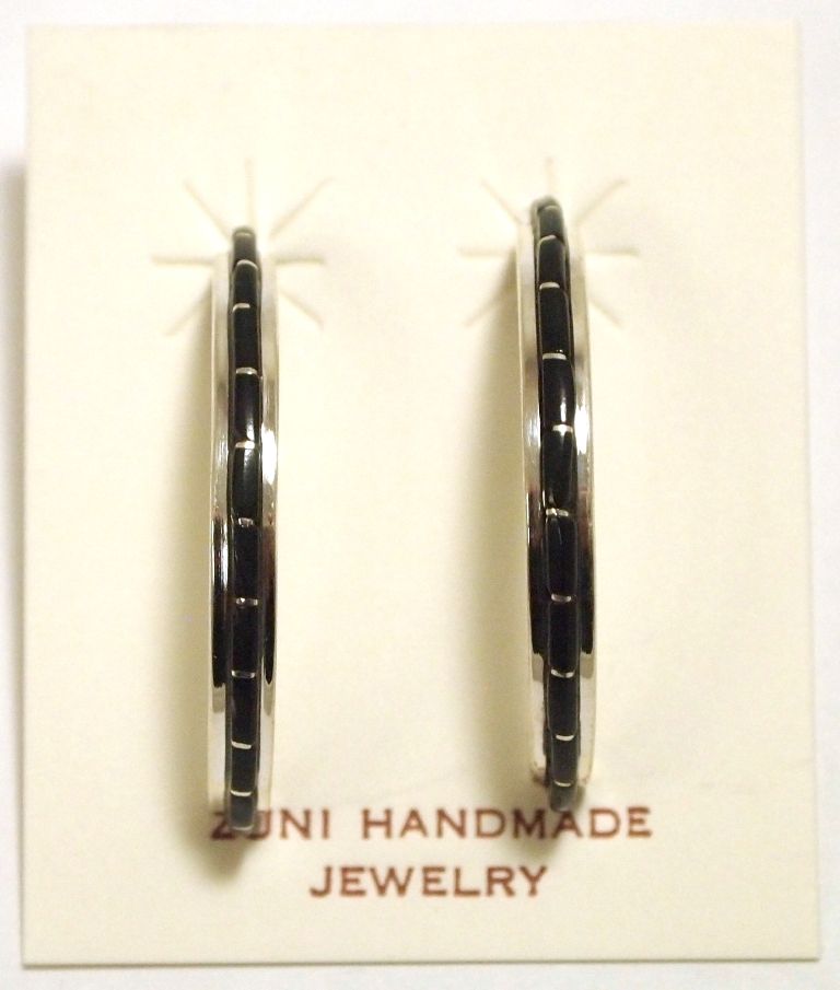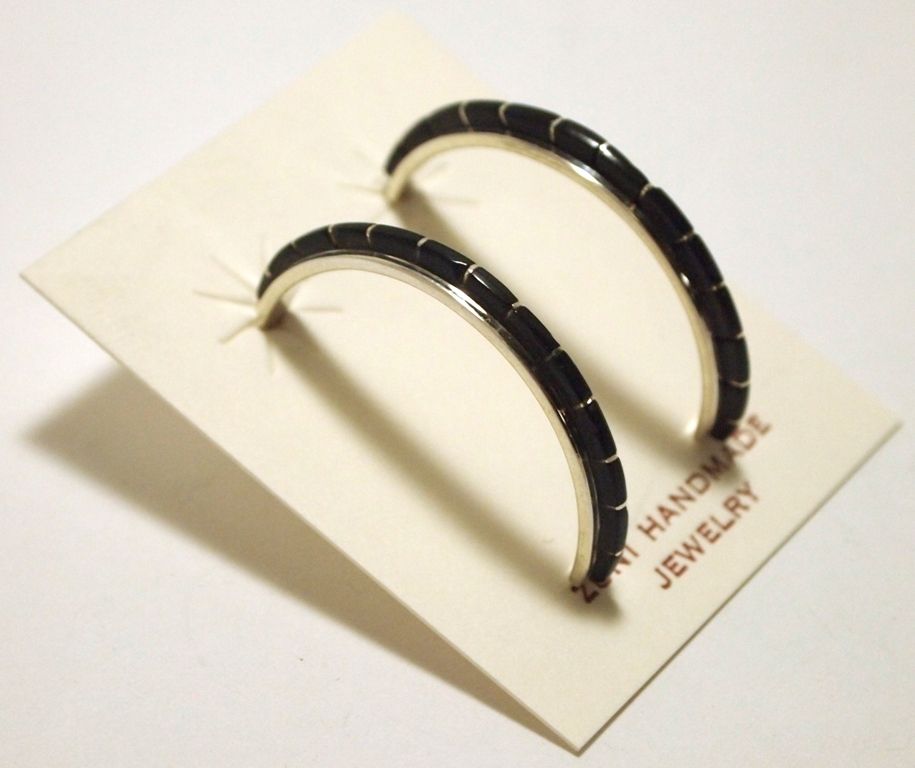 Zuni Onyx Inlay Sterling Silver Half-Ring Post Earrings - Susan Kalestewa