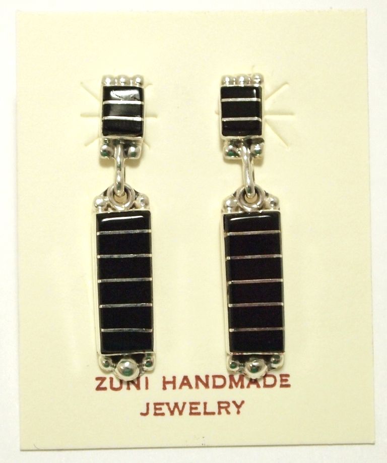 Zuni Onyx Inlay Sterling Silver Post Earrings - Eldrick Seoutewa