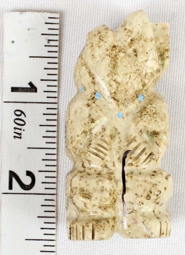 Native American Zuni Onyx Standing Bear Fetish by Alex Tsethlikai, measures 1'' x 2.5'' and has artist's initials on the bottom, turquoise eyes, turquoise necklace