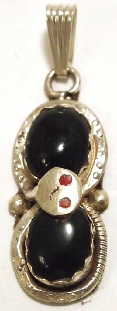Zuni Onyx Sterling Silver Snake Pendant - Effie Calavaza