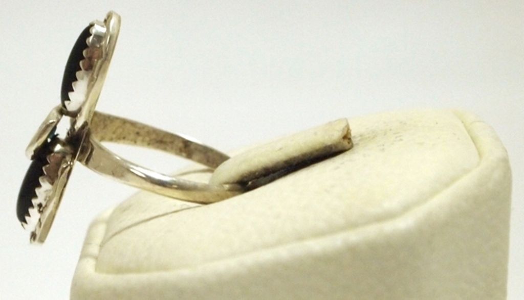 Zuni Onyx Sterling Silver Snake w/Turquoise Eyes Women's Ring - Effie Calavaza