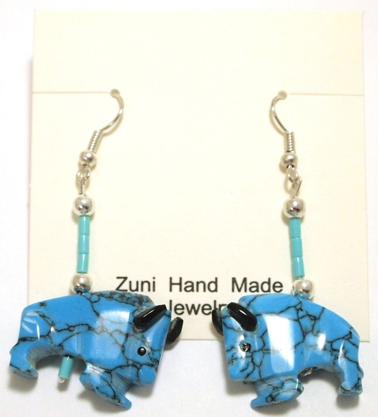 Zuni Onyx & Turquoise Buffalo Sterling Silver French Hook Earrings - Todd Etsate