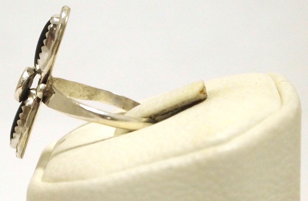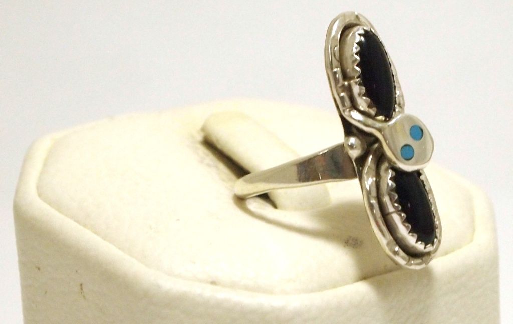 Zuni Onyx & Turquoise Sterling Silver Snake Women's Ring - Effie Calavaza