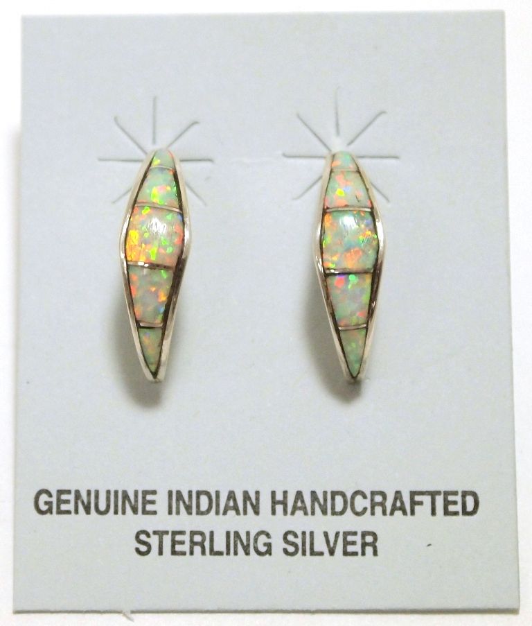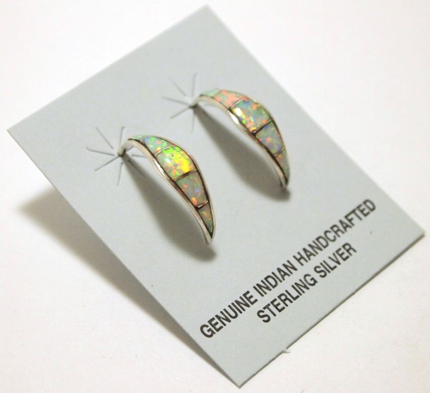 Zuni Opal Inlay Sterling Silver Half-Ring Post Earrings - Debbie Livingston