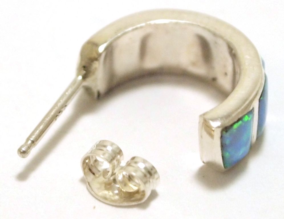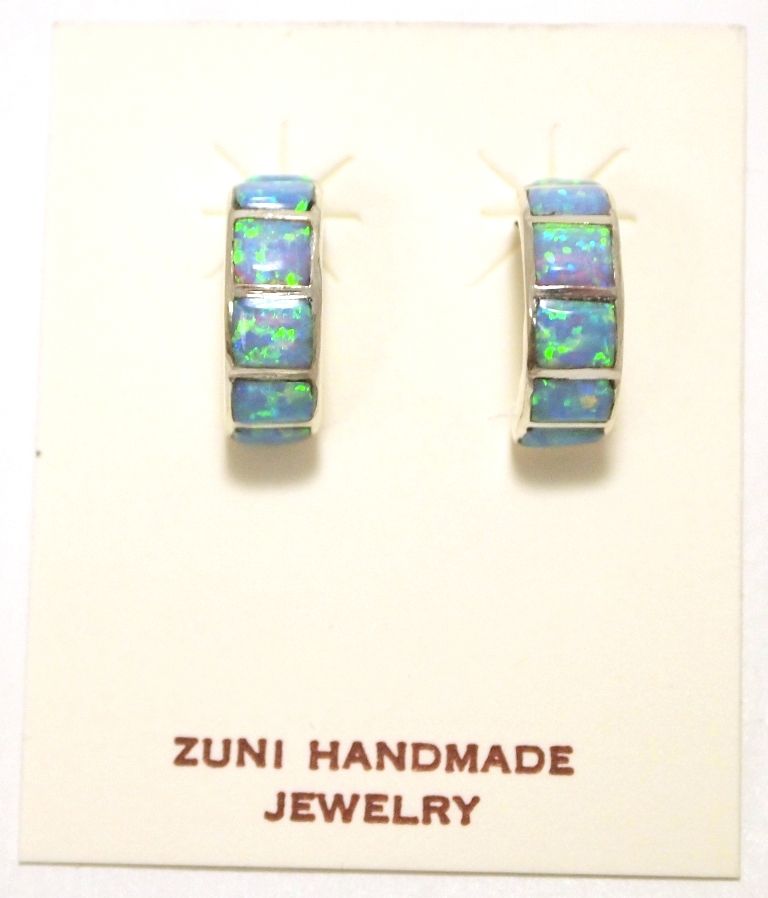Zuni Opal Inlay Sterling Silver Half-Ring Post Earrings - Glennetta Luna