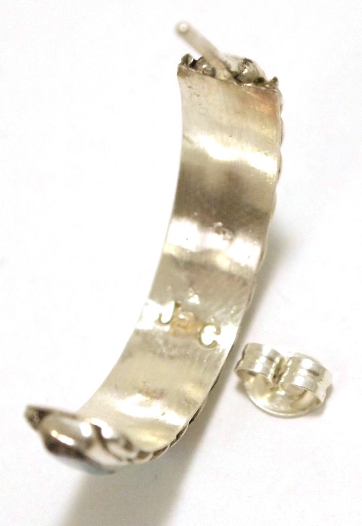 Zuni Opal Inlay Sterling Silver Half-Ring Post Earrings - Malcolm Chavez
