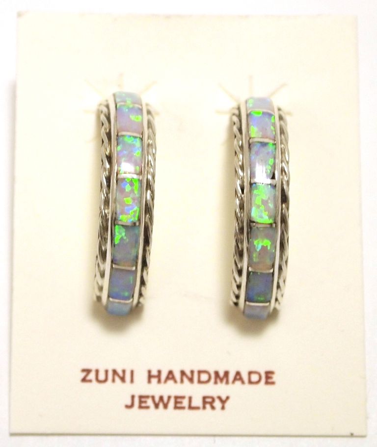 Zuni Opal Inlay Sterling Silver Half-Ring Post Earrings - Malcolm Chavez