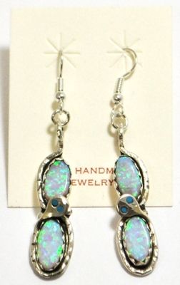 Zuni Opal Snake Sterling Silver French Hook Earrings - Effie Calavaza