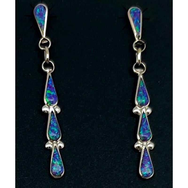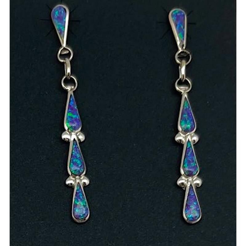 For your consideration is a pair of these fab Zuni sterling silver and opal dangle earrings. These wonderful earrings feature a hand etched, cascading design in sterling silver, accented with shimmery opal by the Zuni artist A. Gasper. These beautiful earrings measure about 2 1/8" long by about 1/4". Beautiful authentic Native American Zuni earrings to add to any jewelry collection! FREE SHIPPING ON ALL JEWELRY ORDERS WITHIN THE US! WE SHIP ALL ITEMS IN-HOUSE!