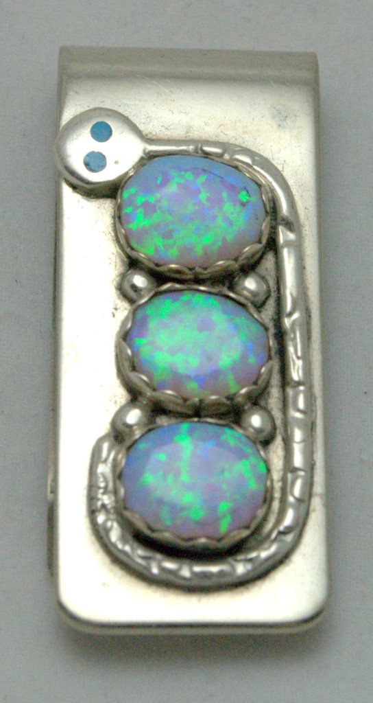 Zuni Opal Sterling Silver Snake Money Clip - Effie Calavaza
