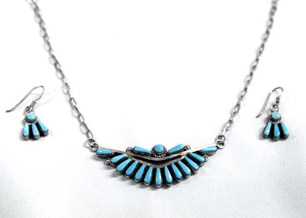 Native American Zuni Peti Point Necklace & Earrings Set. Necklace measures approx. 17''L, earrings measure approx. 1 1/4''L. Buyers Pay Actual Shipping and Handling Charges(see terms and conditions for more information).