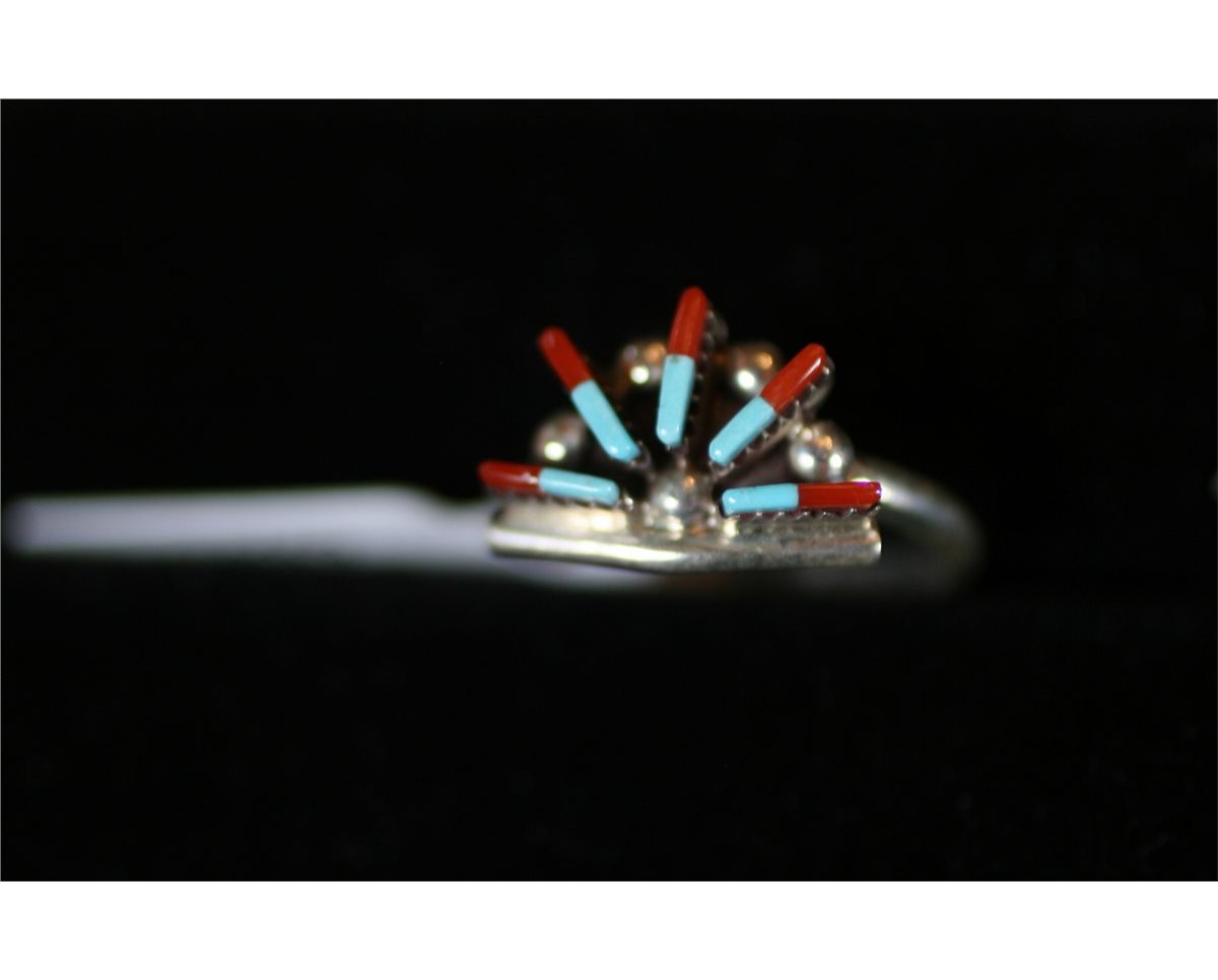 Zuni Petit point silver ring with red coral and turquois, 530859 R995