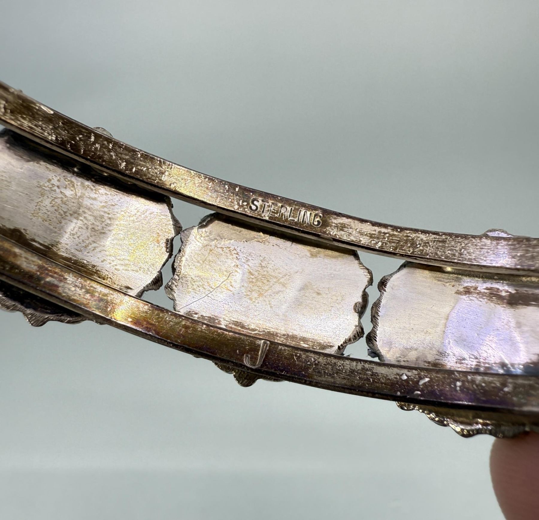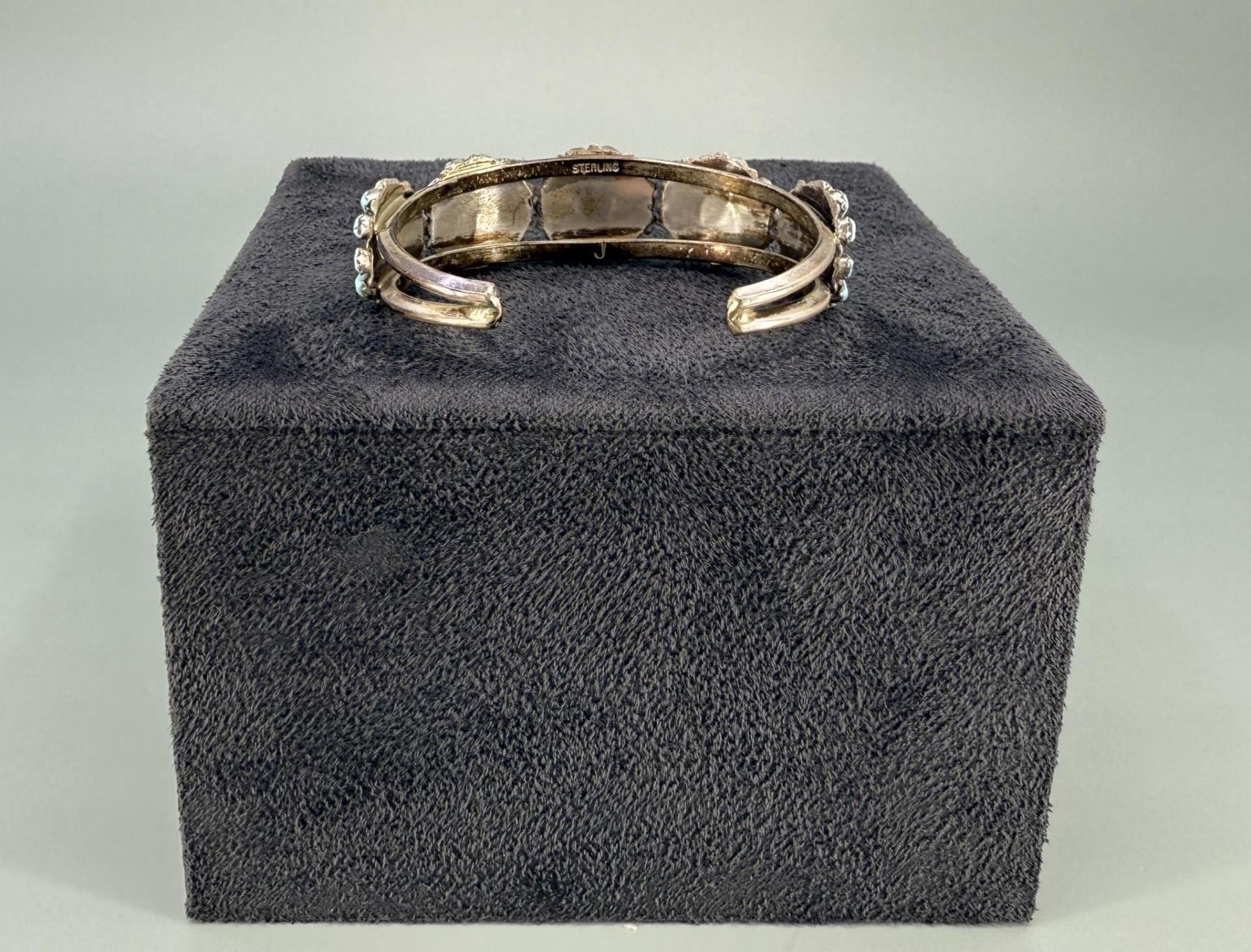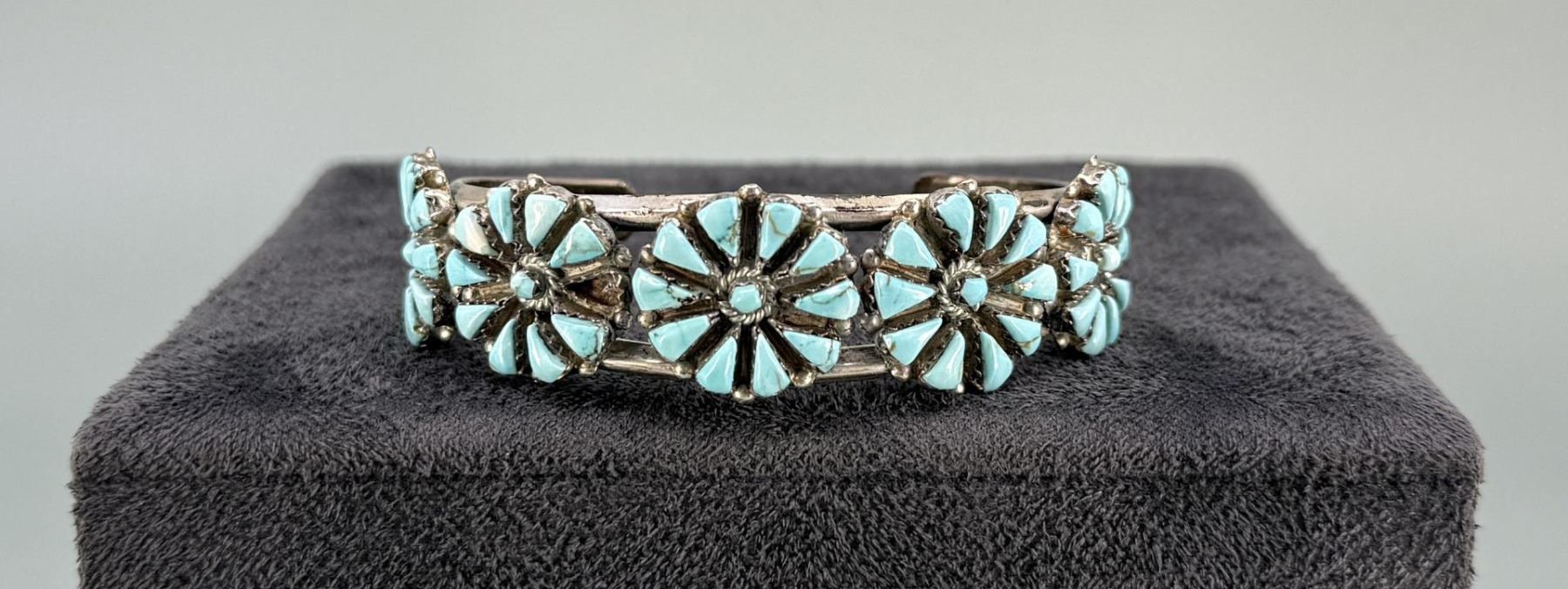 Nice petit point turquoise design. Outside diameter is 2 3/4". 27.8 grams.