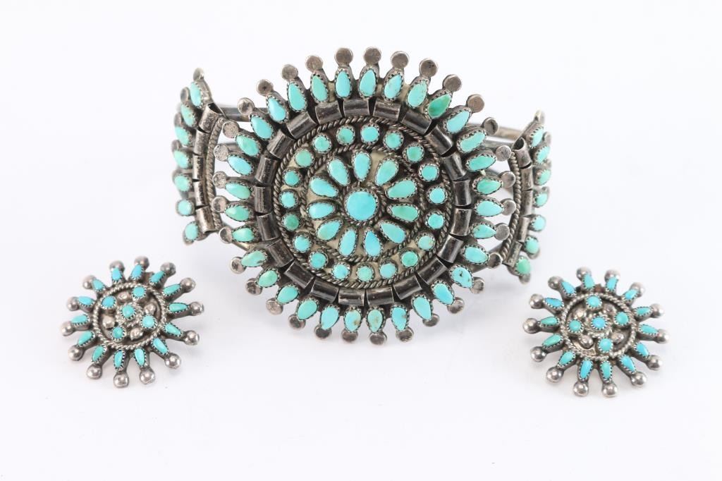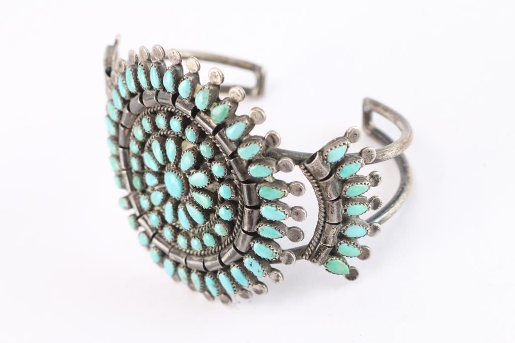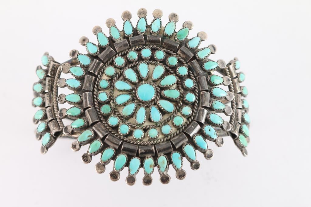 Zuni Pettipoint Turquoise Cluster Cuff.
