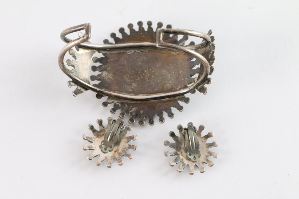 With matching clip on earrings. Vintage type. Measures 8 1/2" with gap.