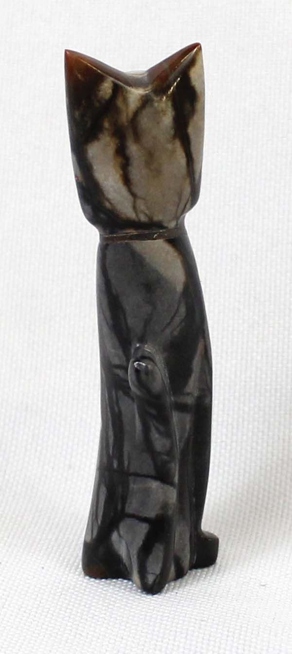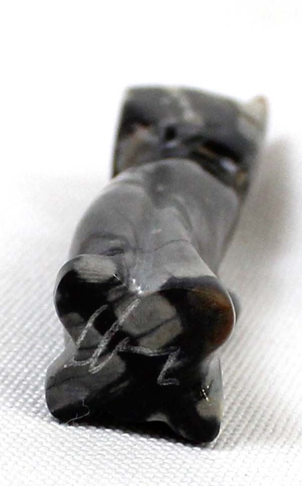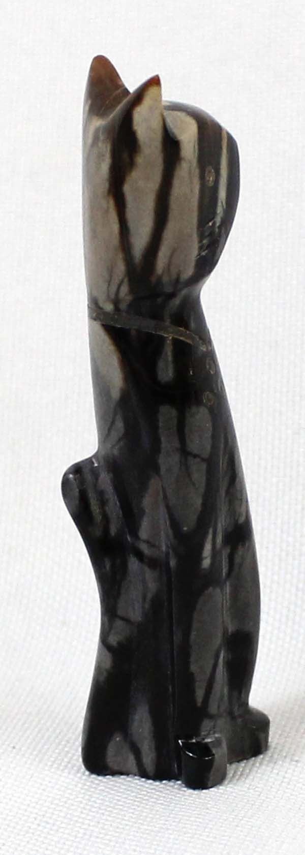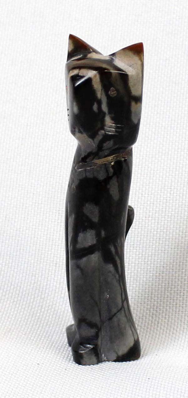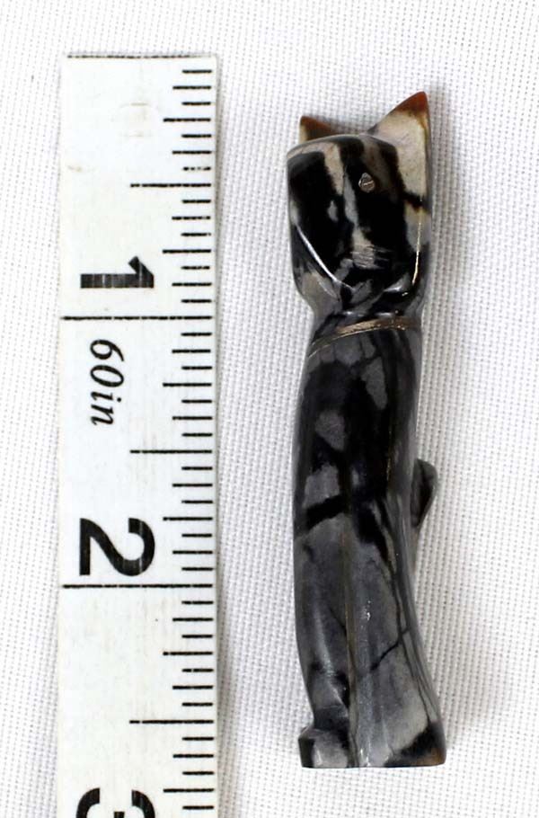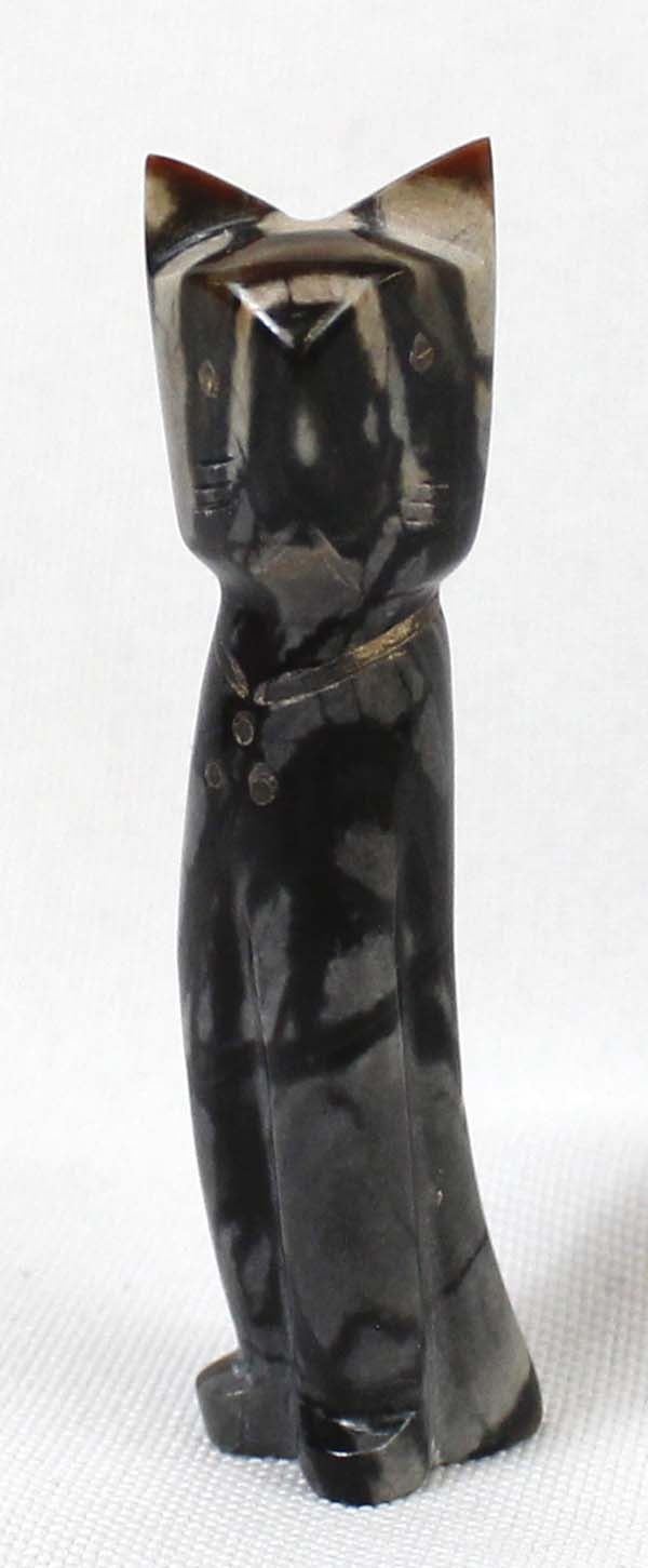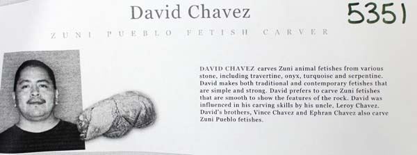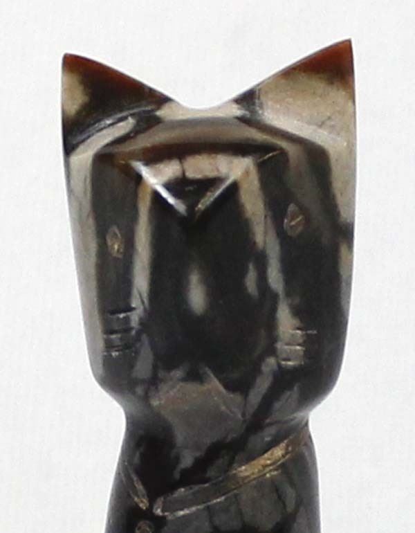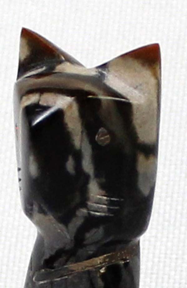 Native American Zuni Picasso Marble Cat Fetish by David Chavez, measures .5'' x 2.25'' x .5'' and is signed on the bottom, silver eyes