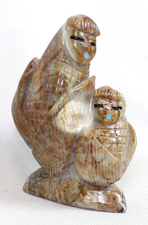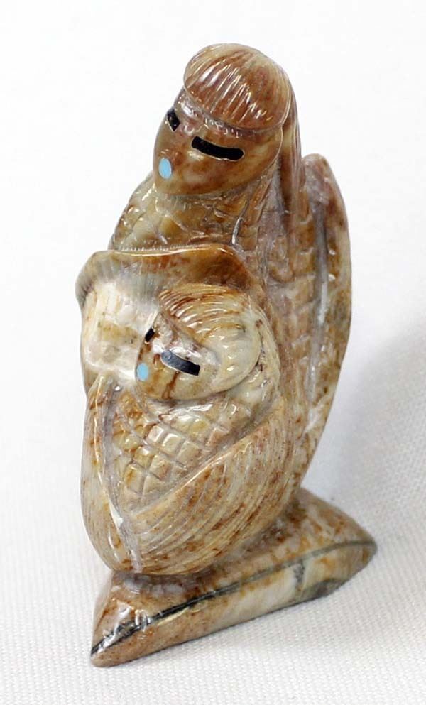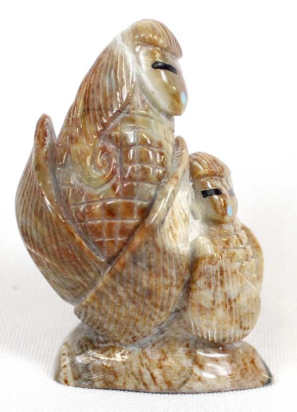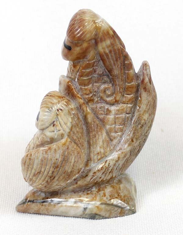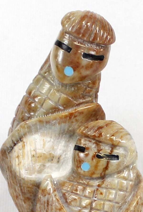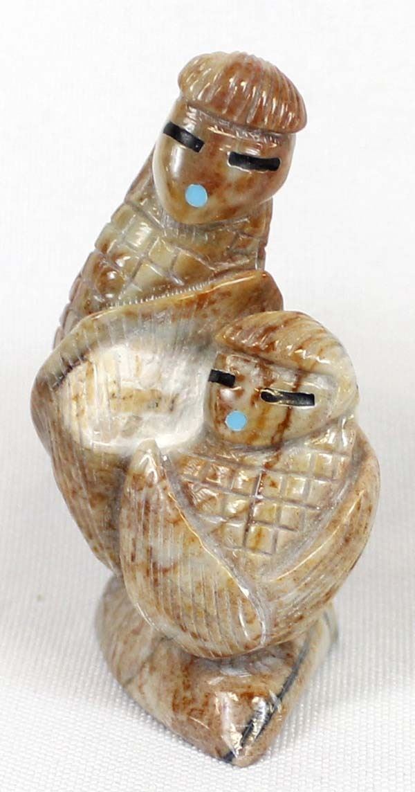 Native American Zuni Picasso Marble Double Corn Maiden Fetish by Hudson Sandy, measures 2'' x 2.5'' and is signed on the bottom, fabulous detail