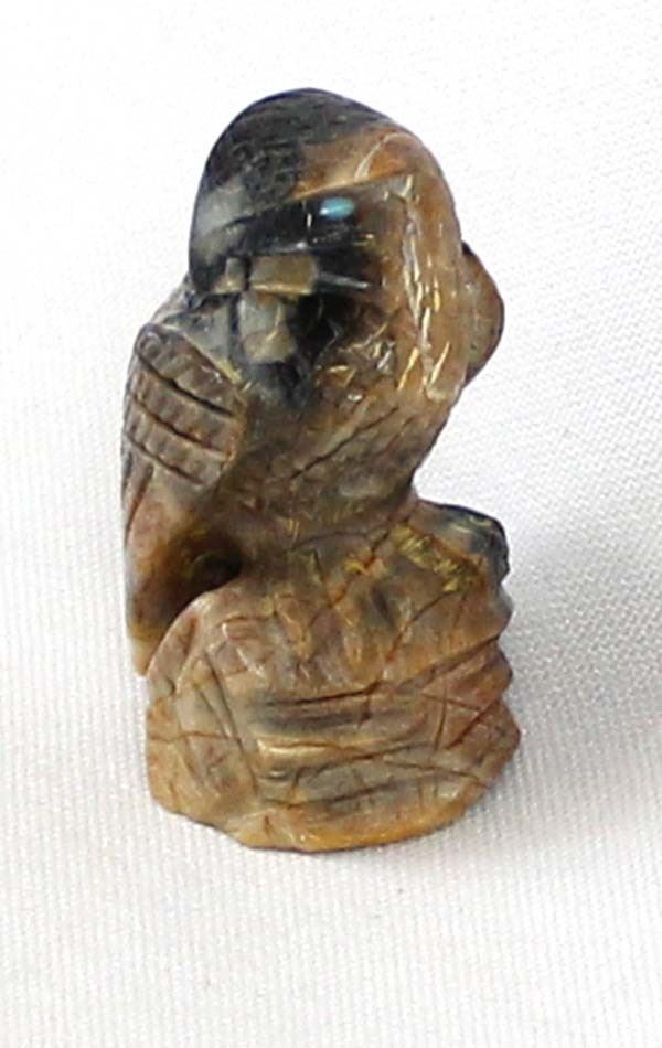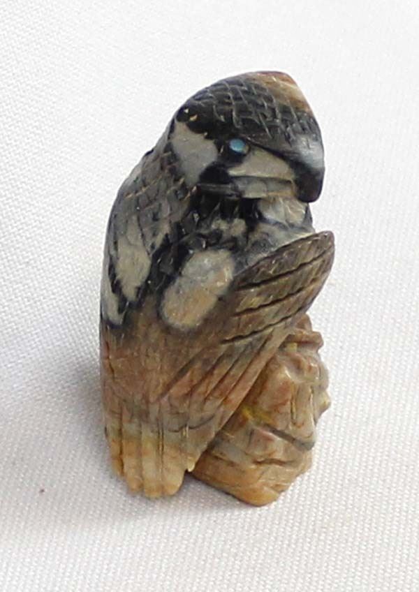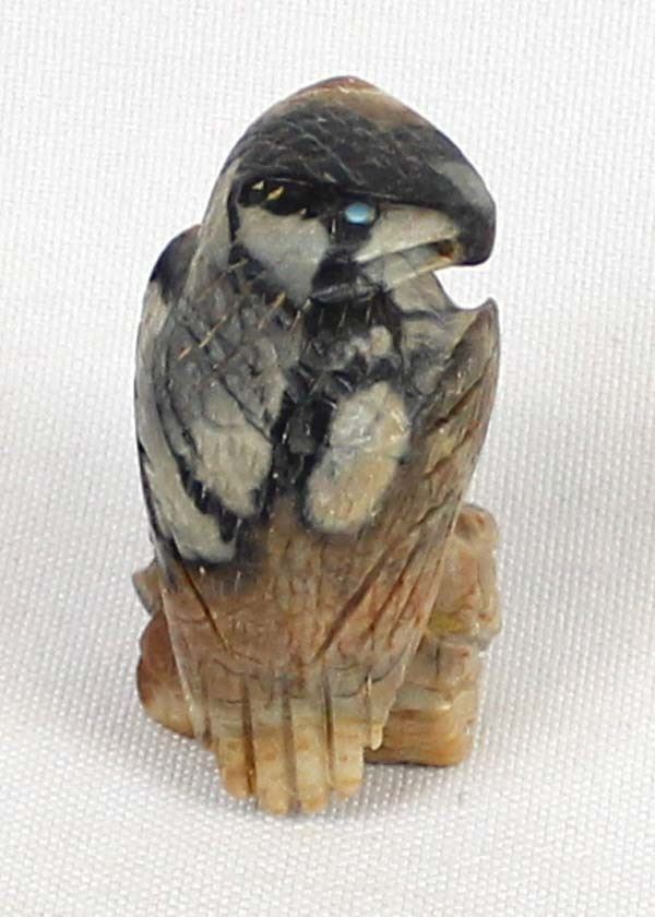 Native American Zuni Picasso Marble Eagle by Arvella Cheama, measures 2'' x 1'' and is signed on the bottom, turquoise eyes
