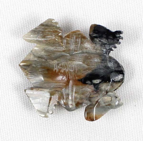 Native American Zuni Picasso Marble Horned Toad Fetish by Hudson Sandy, measures 1.5'' x 1.5'' x .5'' and is signed on the bottom, phenomenal details