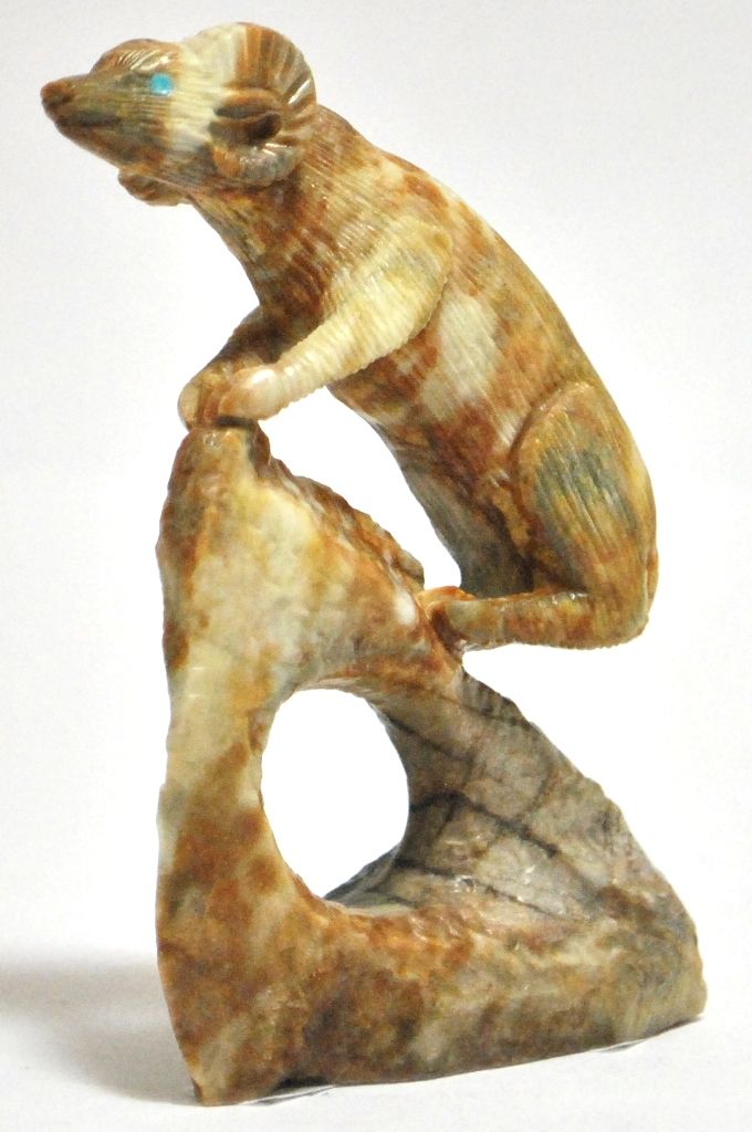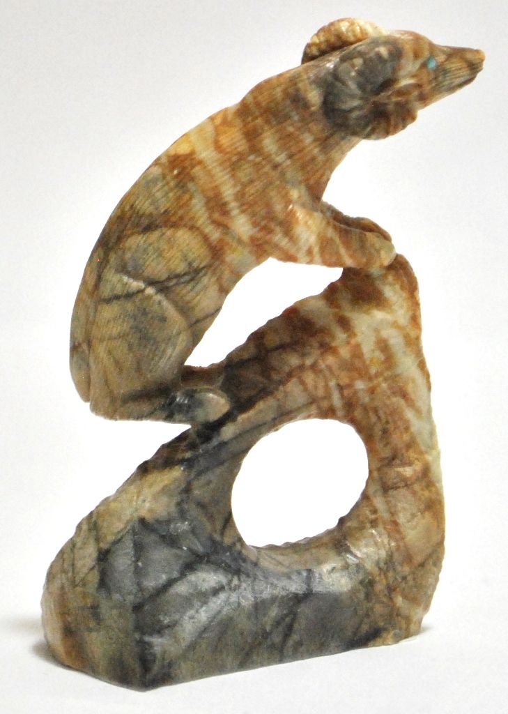 Zuni Picasso Marble Mountain Goat / Ram on Perch Fetish - Colin Weeka