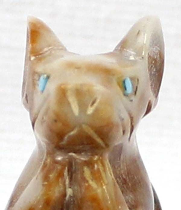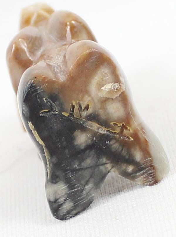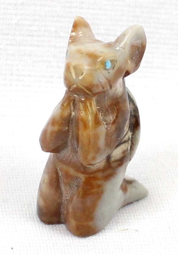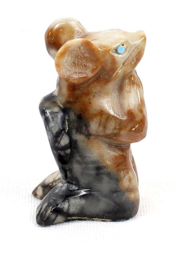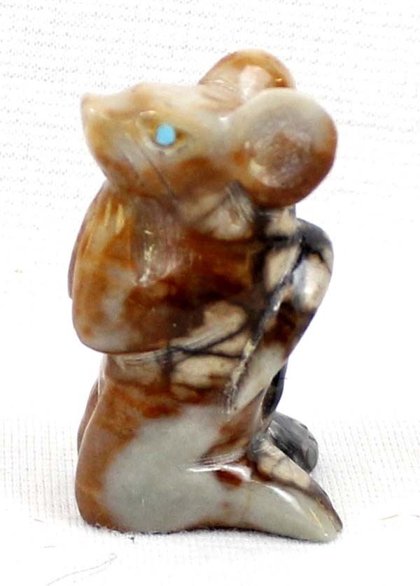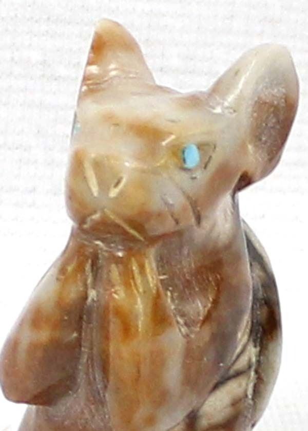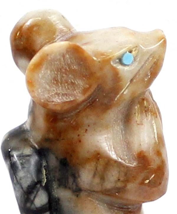 Native American Zuni Picasso Marble Mouse Fetish by Yancy Halusewa, measures 1.5'' x 1'' and has turquoise eyes, artist's initials on the bottom, beautiful stone