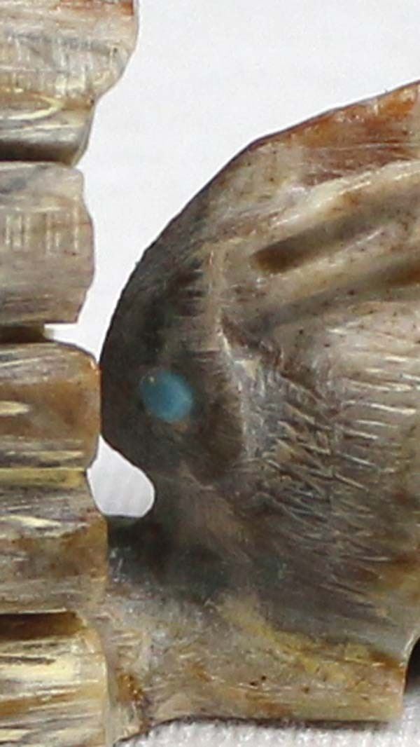 Native American Zuni Picasso Marble Rabbit Fetish by Arvella Cheama, measures 2'' x 1'' and is signed on the bottom, turquoise eyes