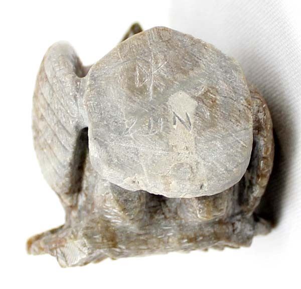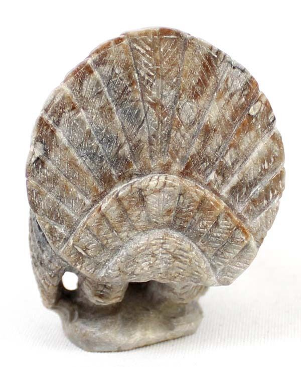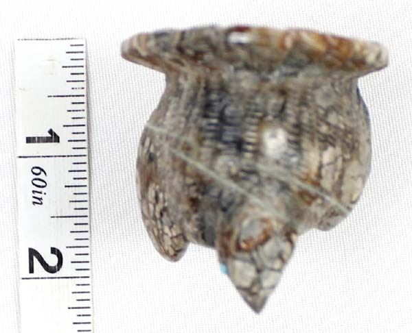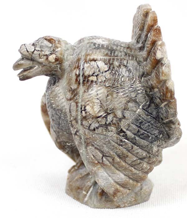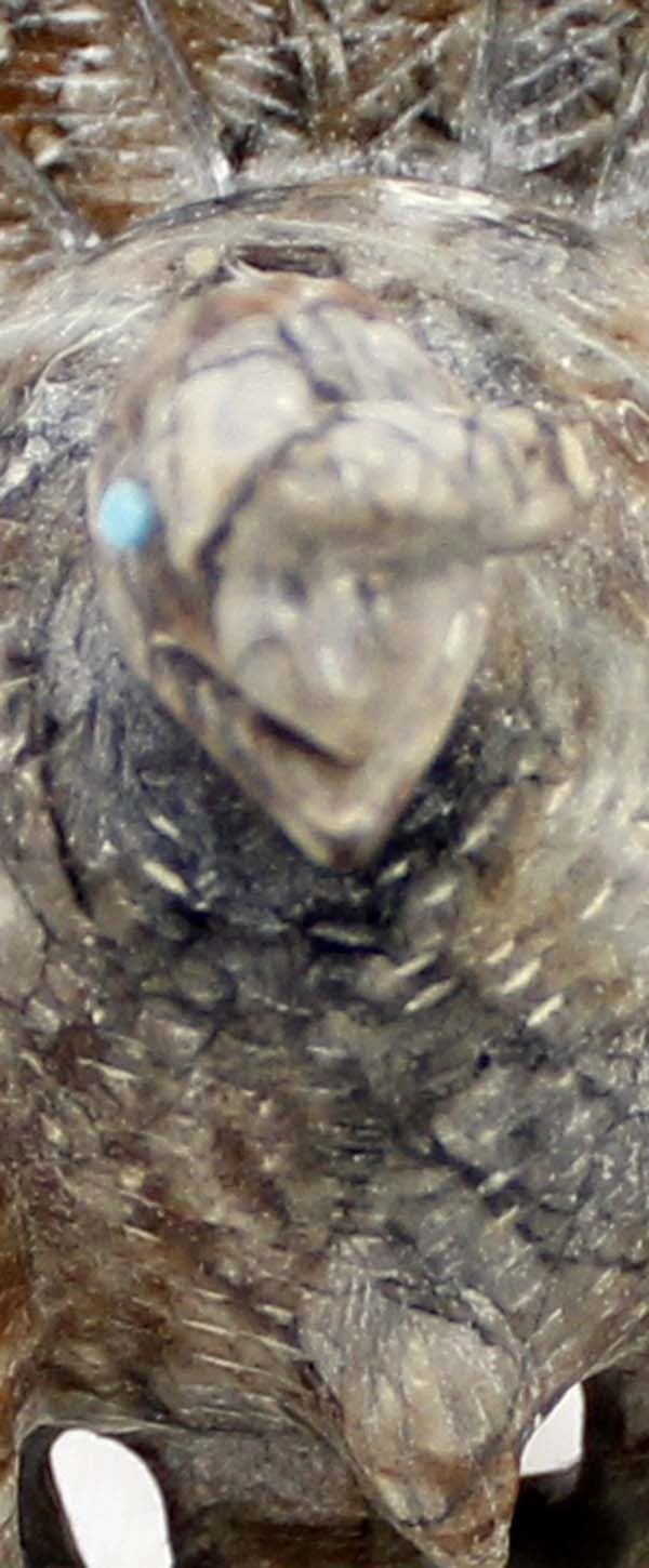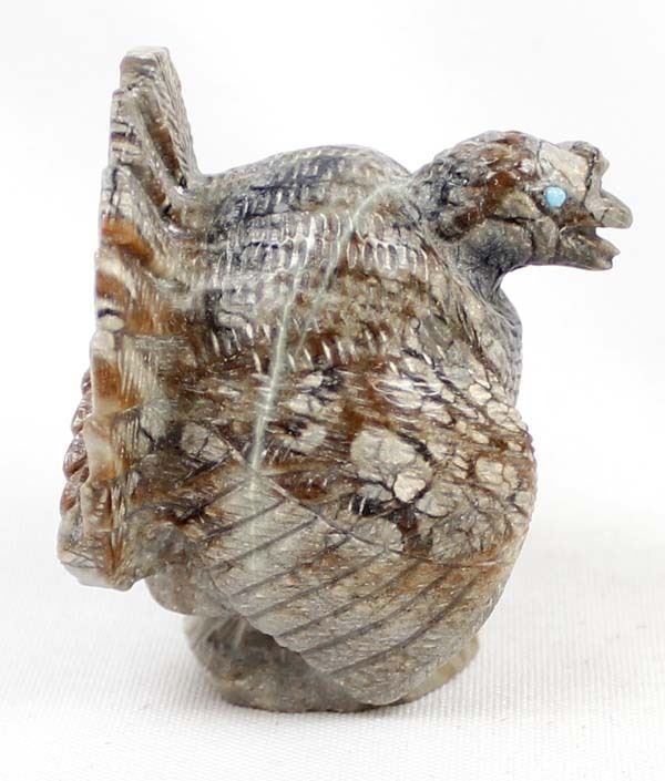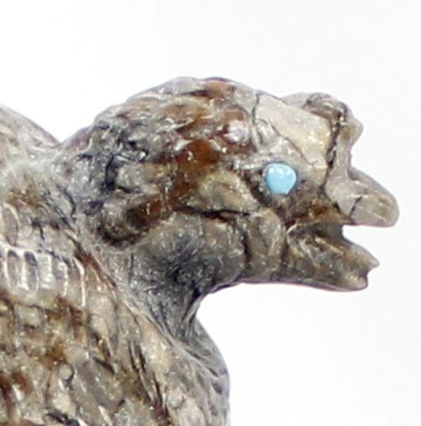 Native American Zuni Picasso Marble Turkey by Derrick Kamaasee, measures 2.5'' x 2'' x 2'' and has artist's initials on the bottom, turquoise eyes