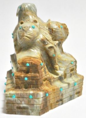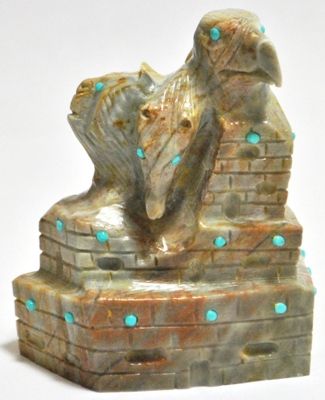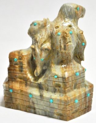 Zuni Picasso Marble & Turquoise Eagle Cat & Anteater Fetish - Michael Laweka