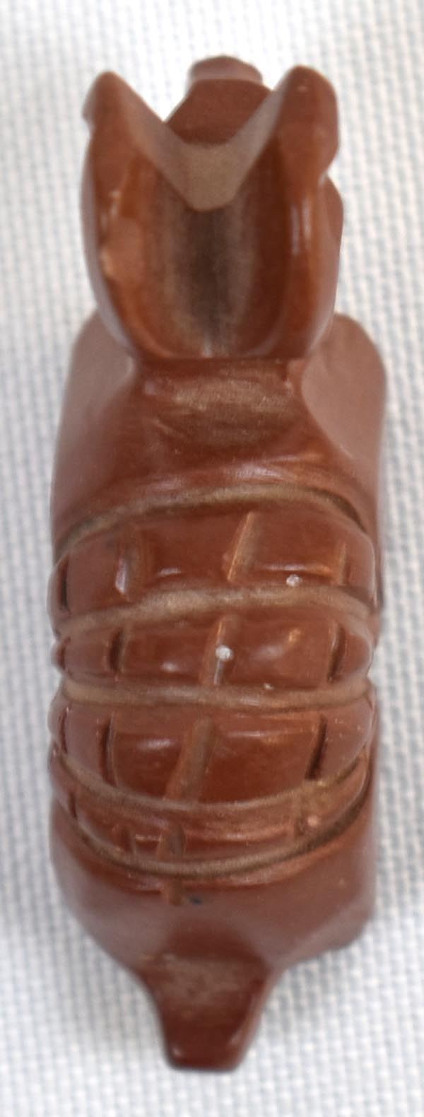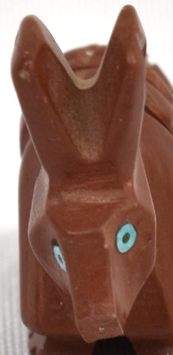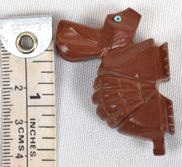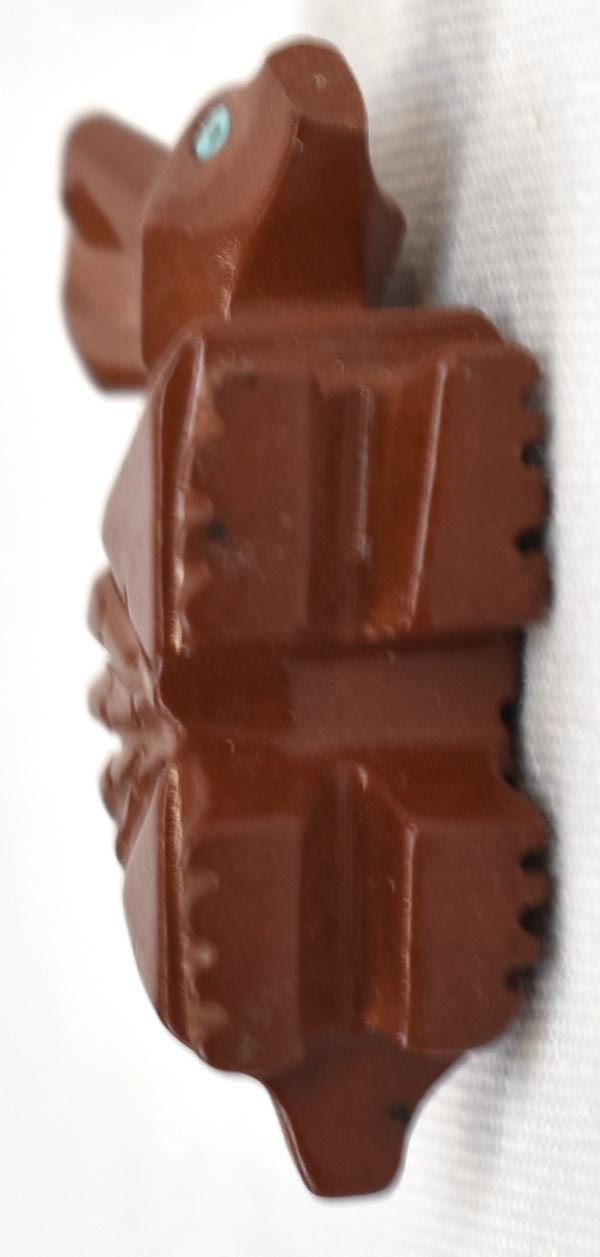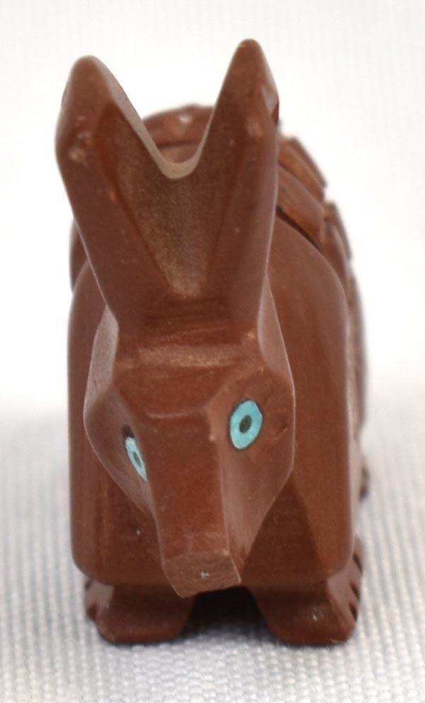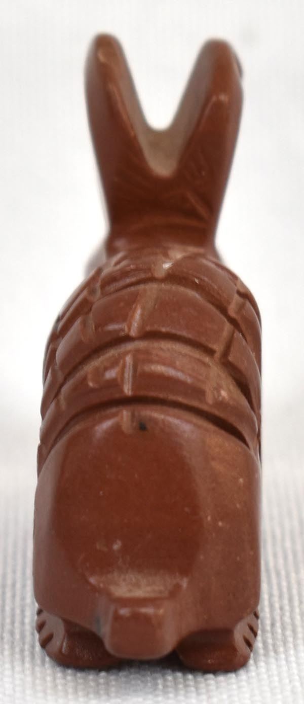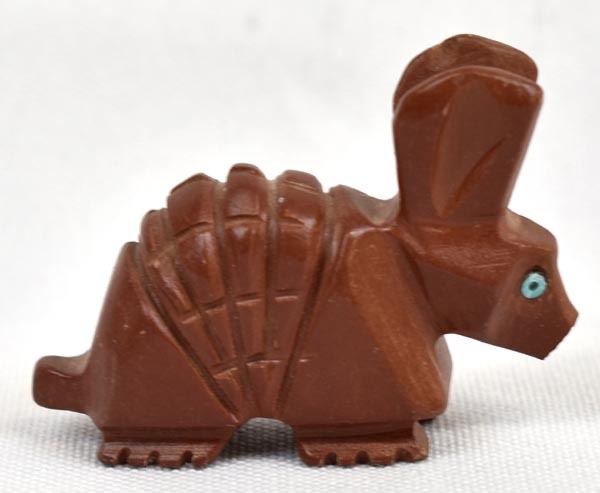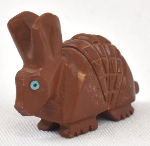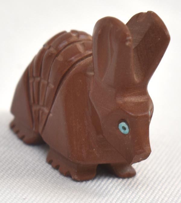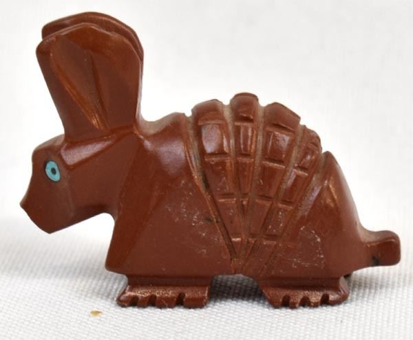 Native American Zuni Pipestone Armadillo Fetish by Tyler Quam, measures 1.75'' x 1.25'' x .5'', turquoise eyes