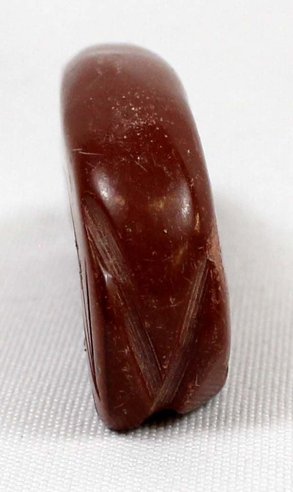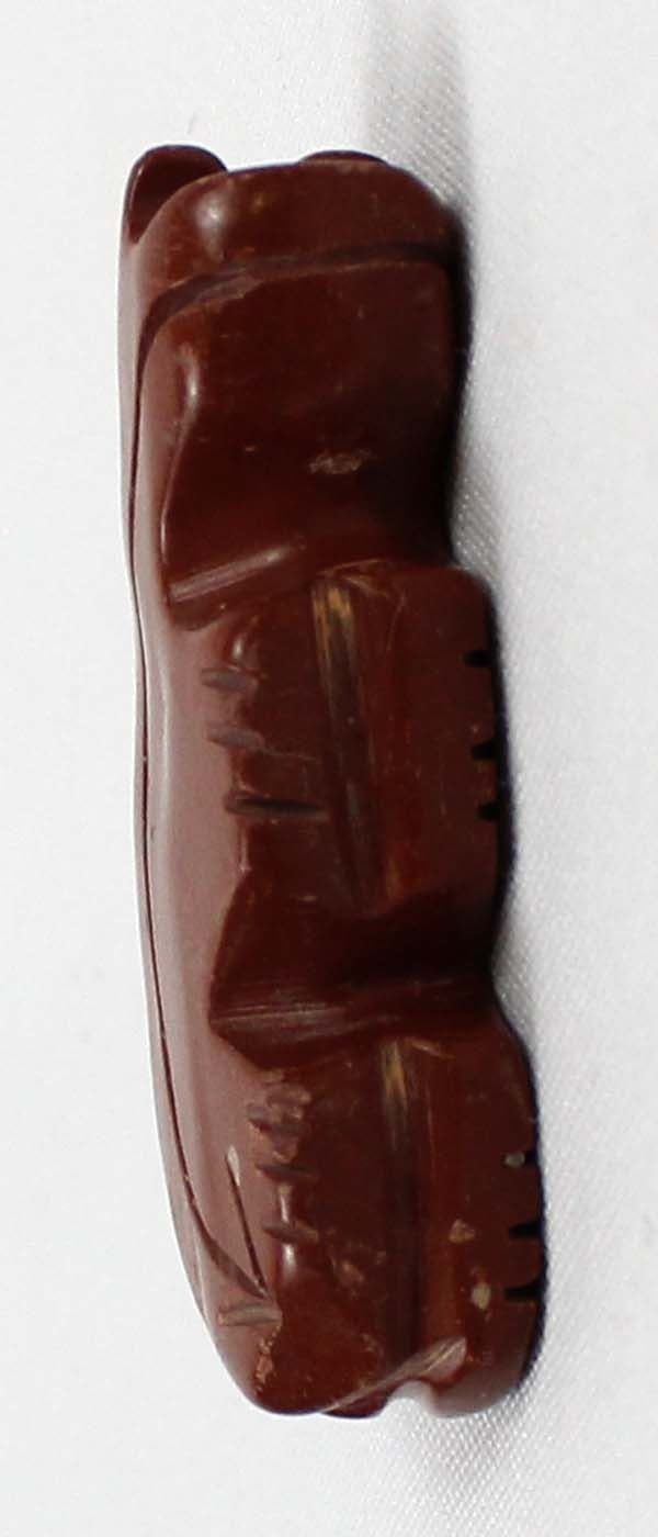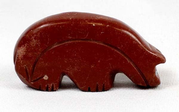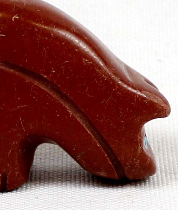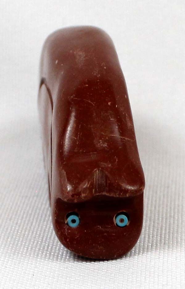 Native American Zuni Pipestone Bear Fetish, measures 1'' x 2'' x .25'', turquoise eyes, perhaps an early Gerald Peina fetish