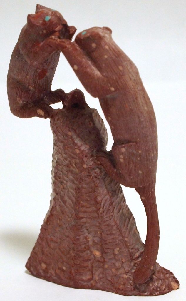 Zuni Pipestone & Turquoise Cats on Perch Fetish - Colin Weeka