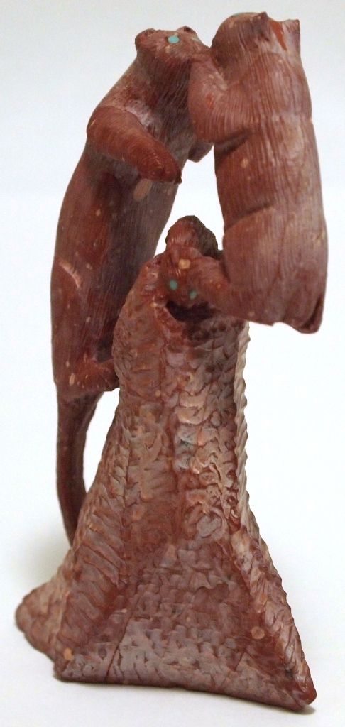 Zuni Pipestone & Turquoise Cats on Perch Fetish - Colin Weeka