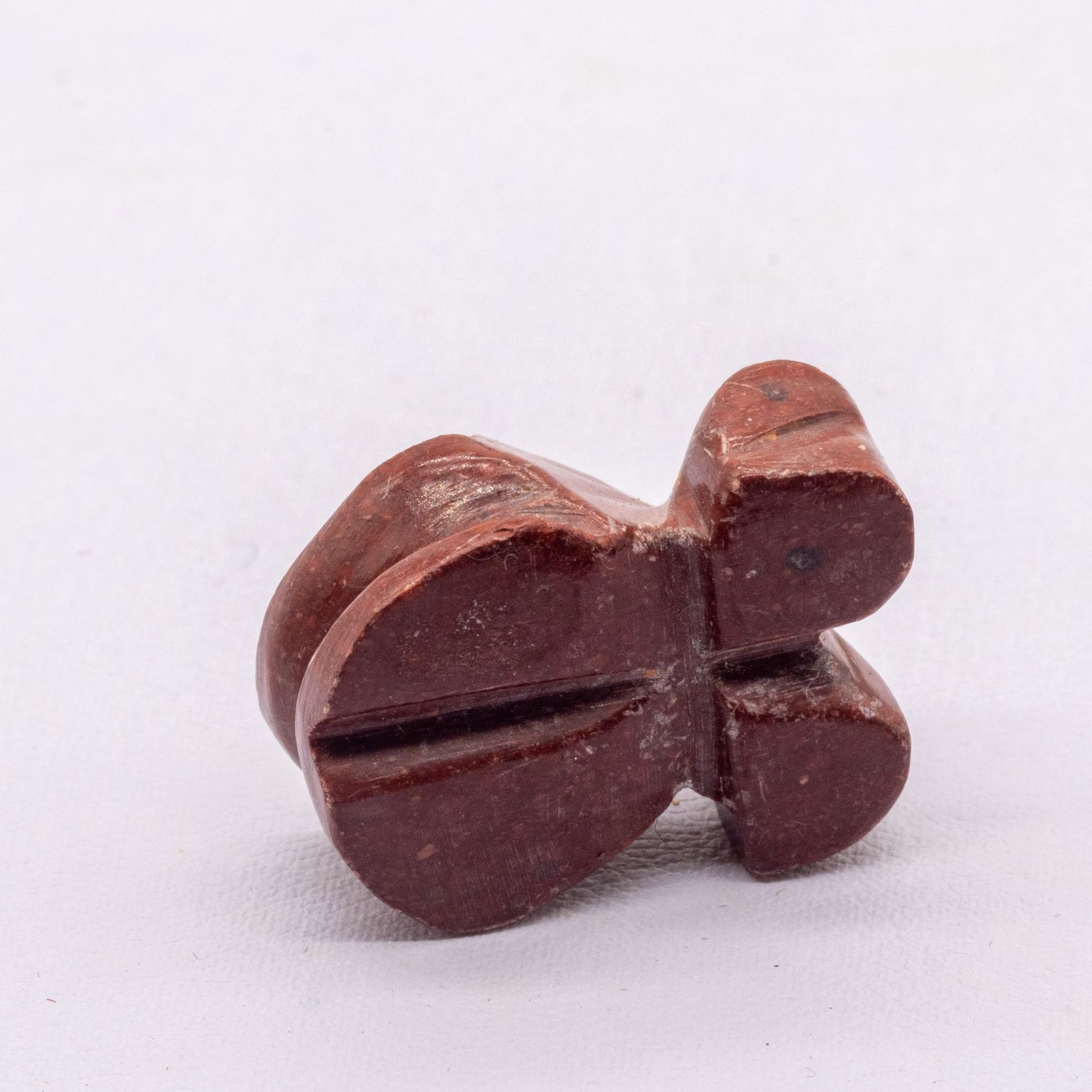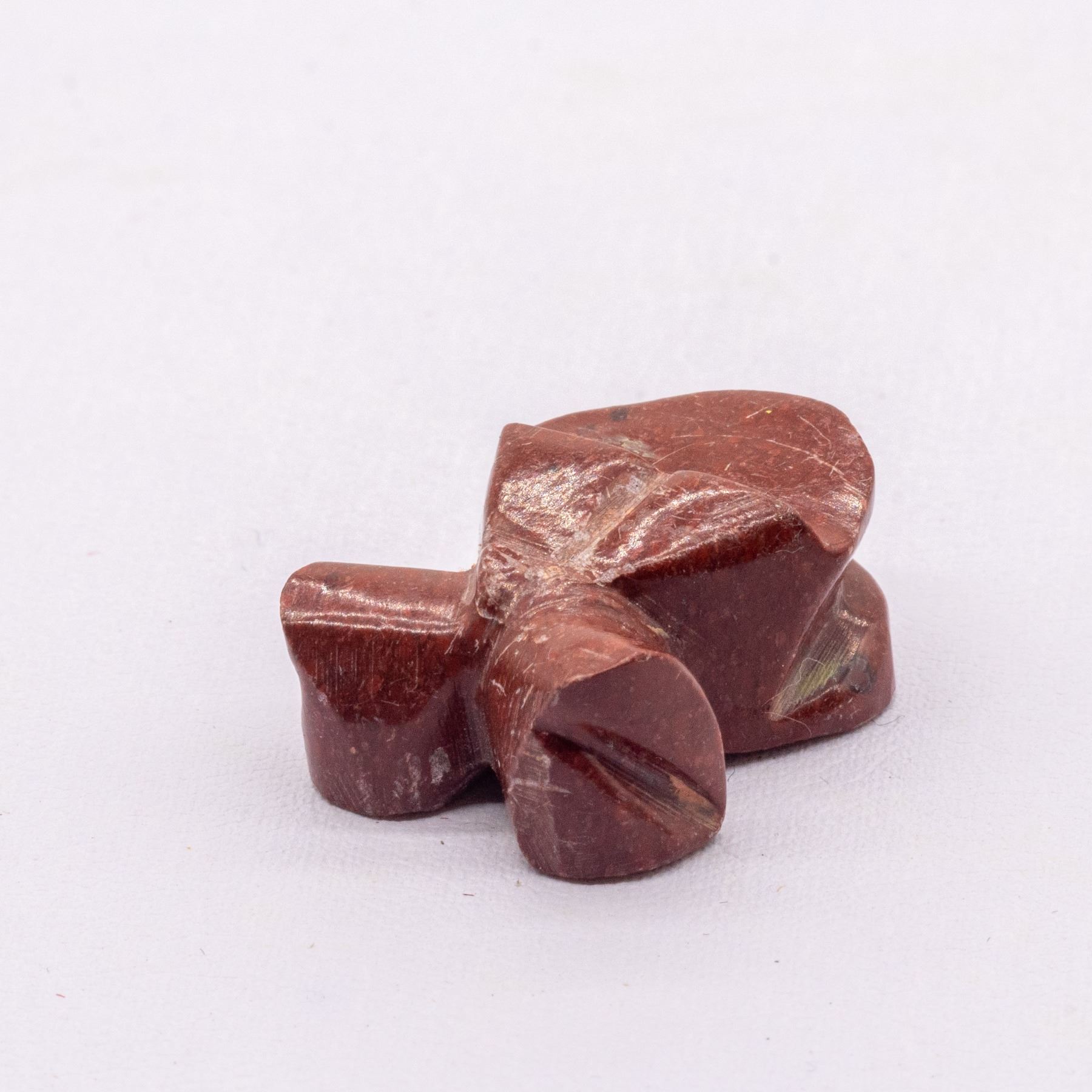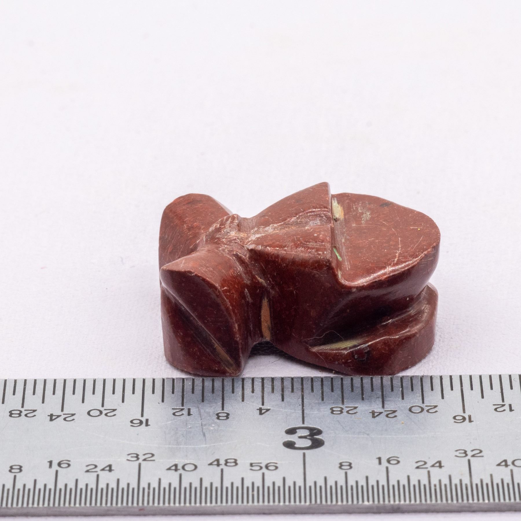 Native American Zuni Pipstone Frog Fetish by Mary Jane Pinto, measures .5" x .5" x 75", turquoise eyes