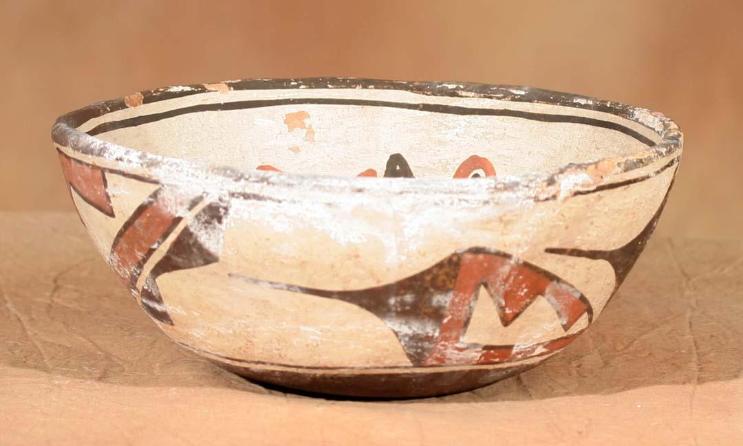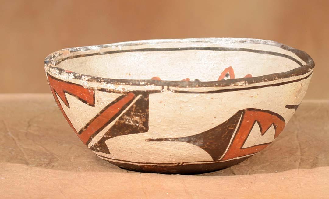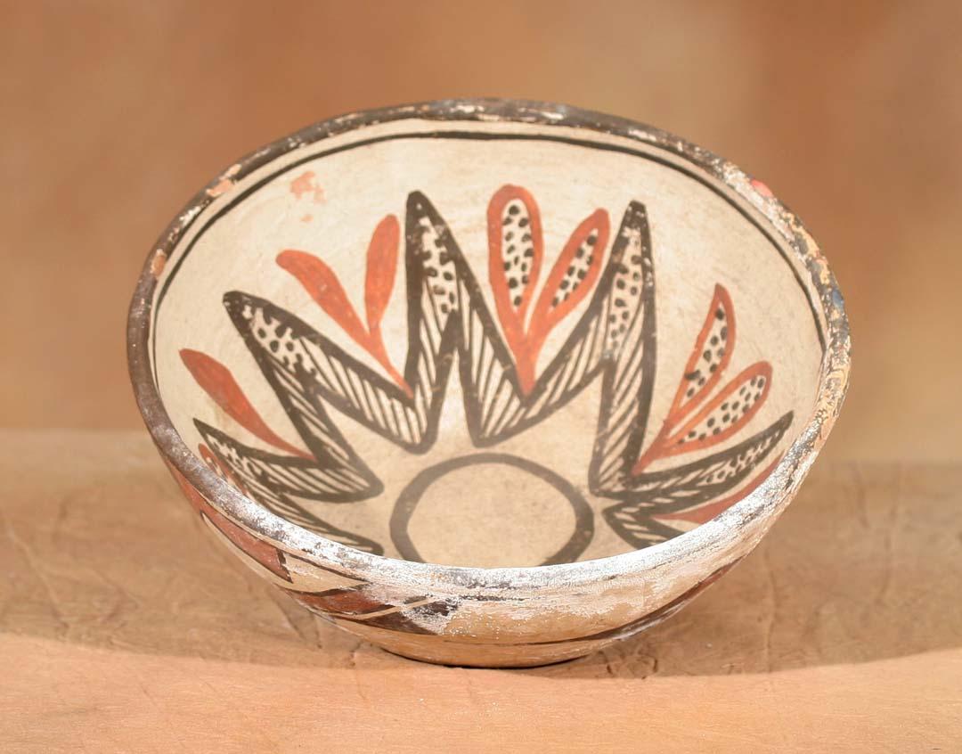 Zuni Polychrome Bowl. 3 ½" x 8 ½". Floral and star designs. Circa 1890. (est $500-1,000). Provenance: Bethany College, Lindsborg, KS. For condition reports please visit: www.auctioninsantafe.com/cr2011.pdf