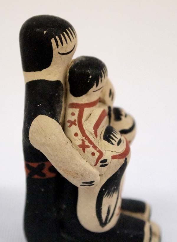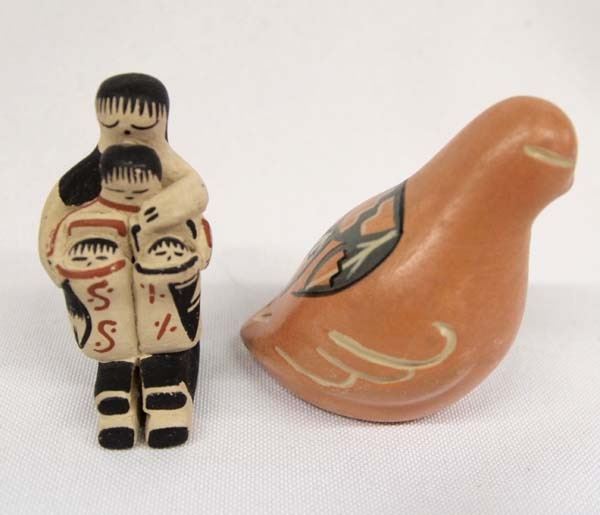 Native American Zuni Pottery Bird by Povi and Jemez Storyteller (signed), largest measures 2'' x 2''