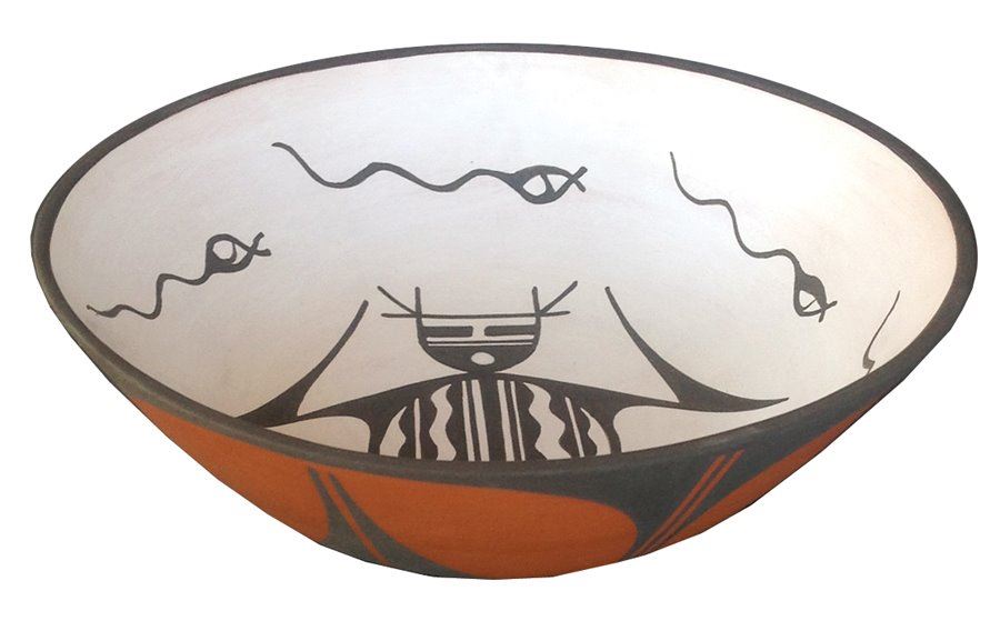 Fine, contemporary, polychrome bowl with frog and tadpole figures. Very good condition.,,7-3/4" x 2-1/4"