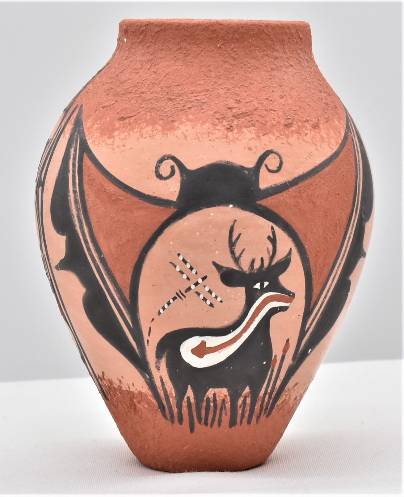 Native American Zuni Pottery Deer and Butterfly Jar by Tonia Fontenelle, measures 5.25''H x 4.25''W and is signed on the bottom, stunning piece