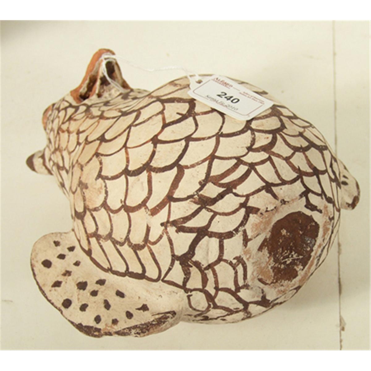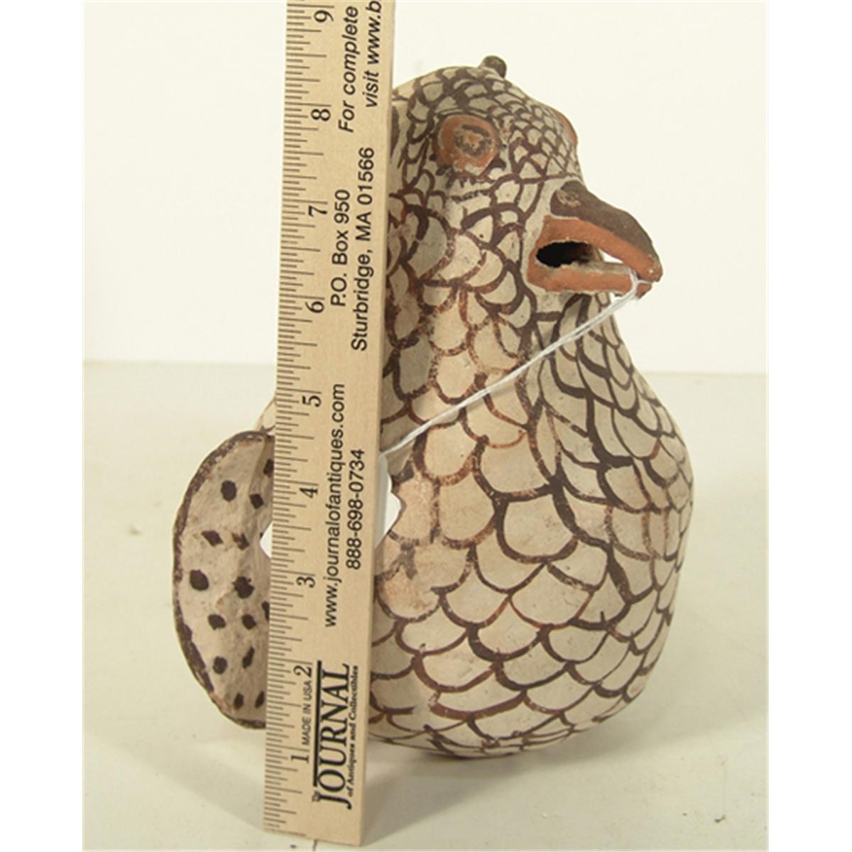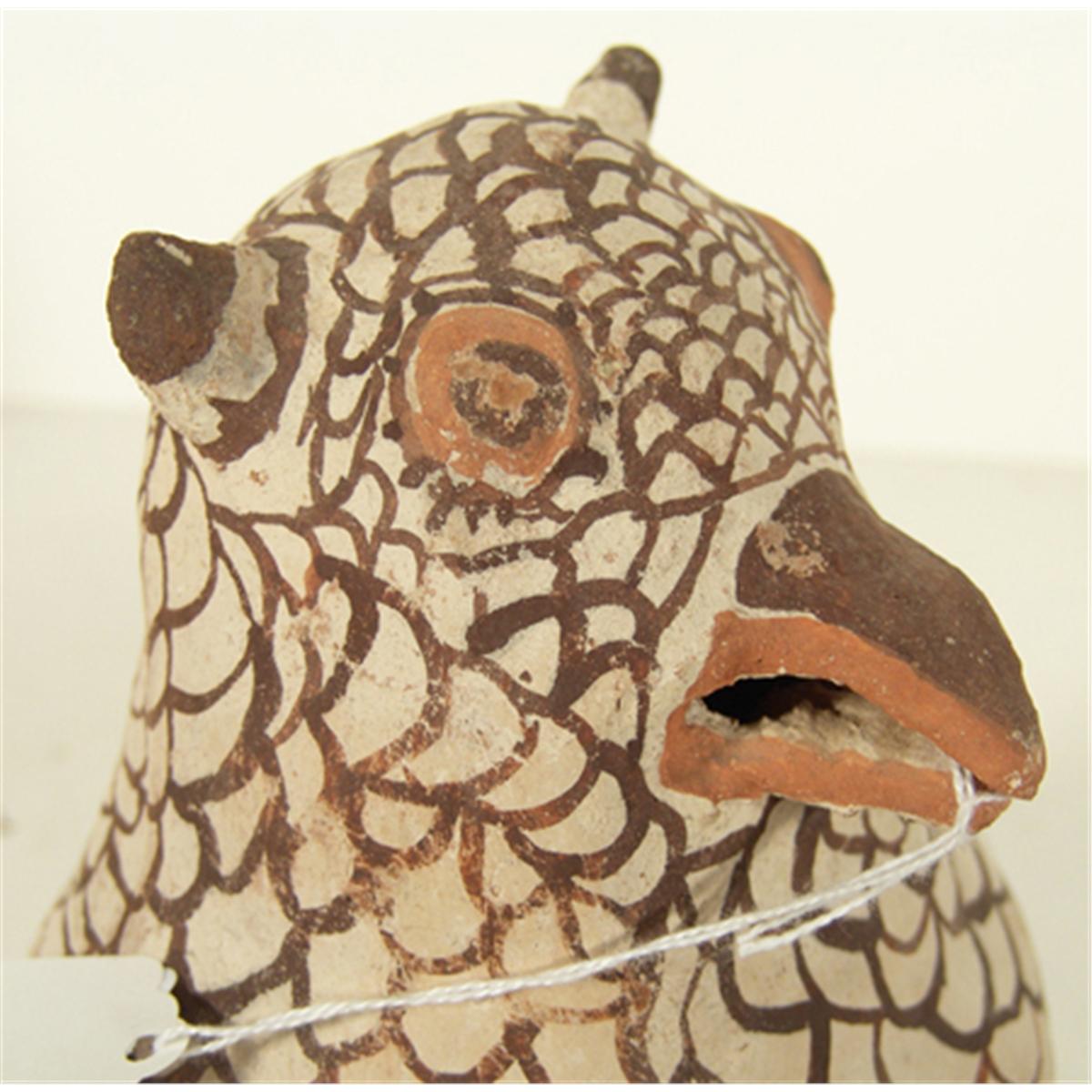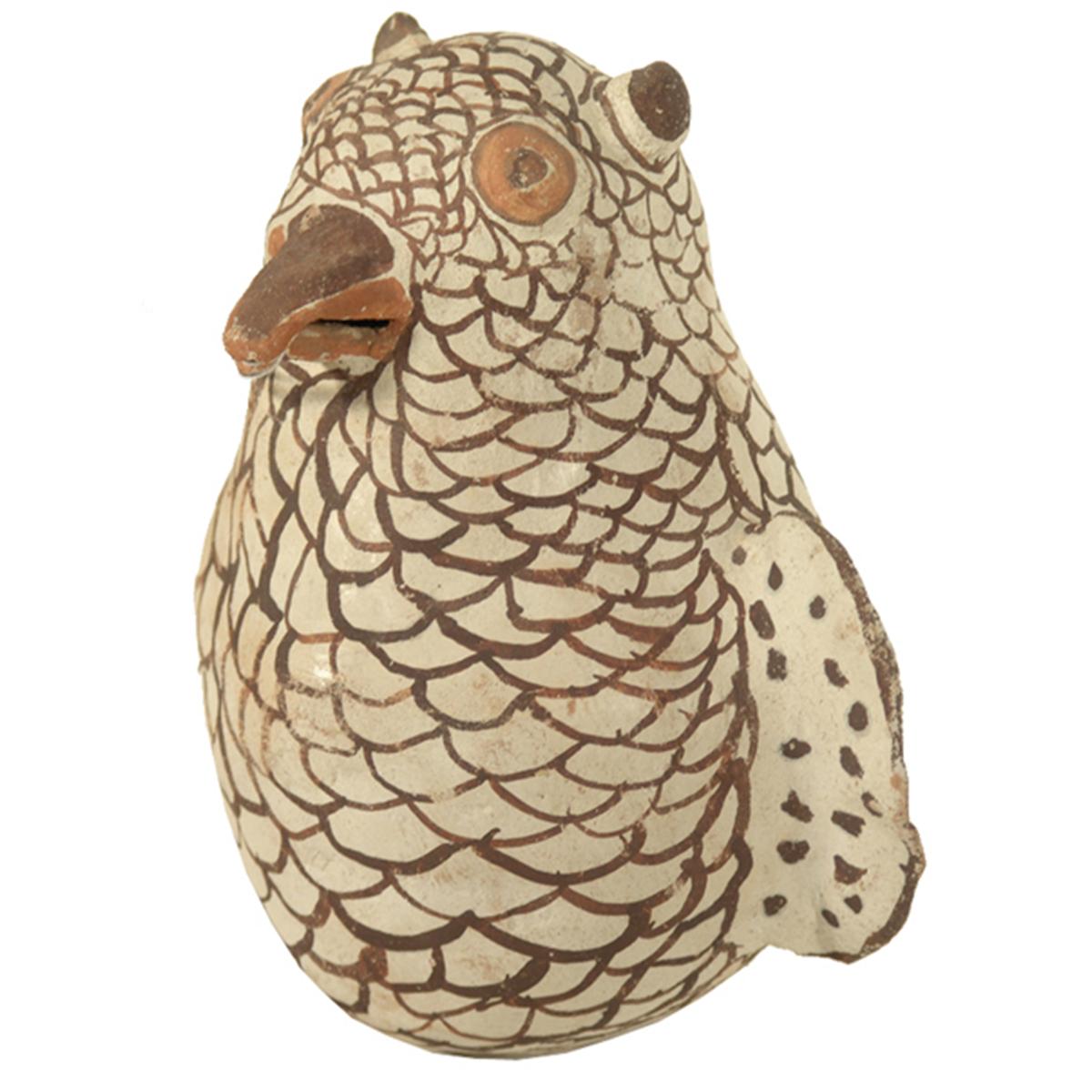Early polychrome pottery owl. 8-1/2" x 8"