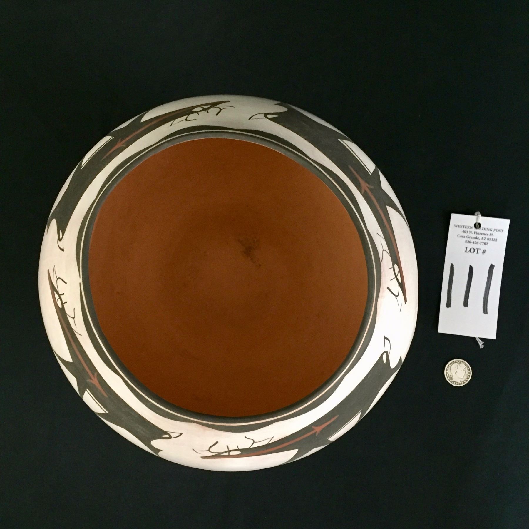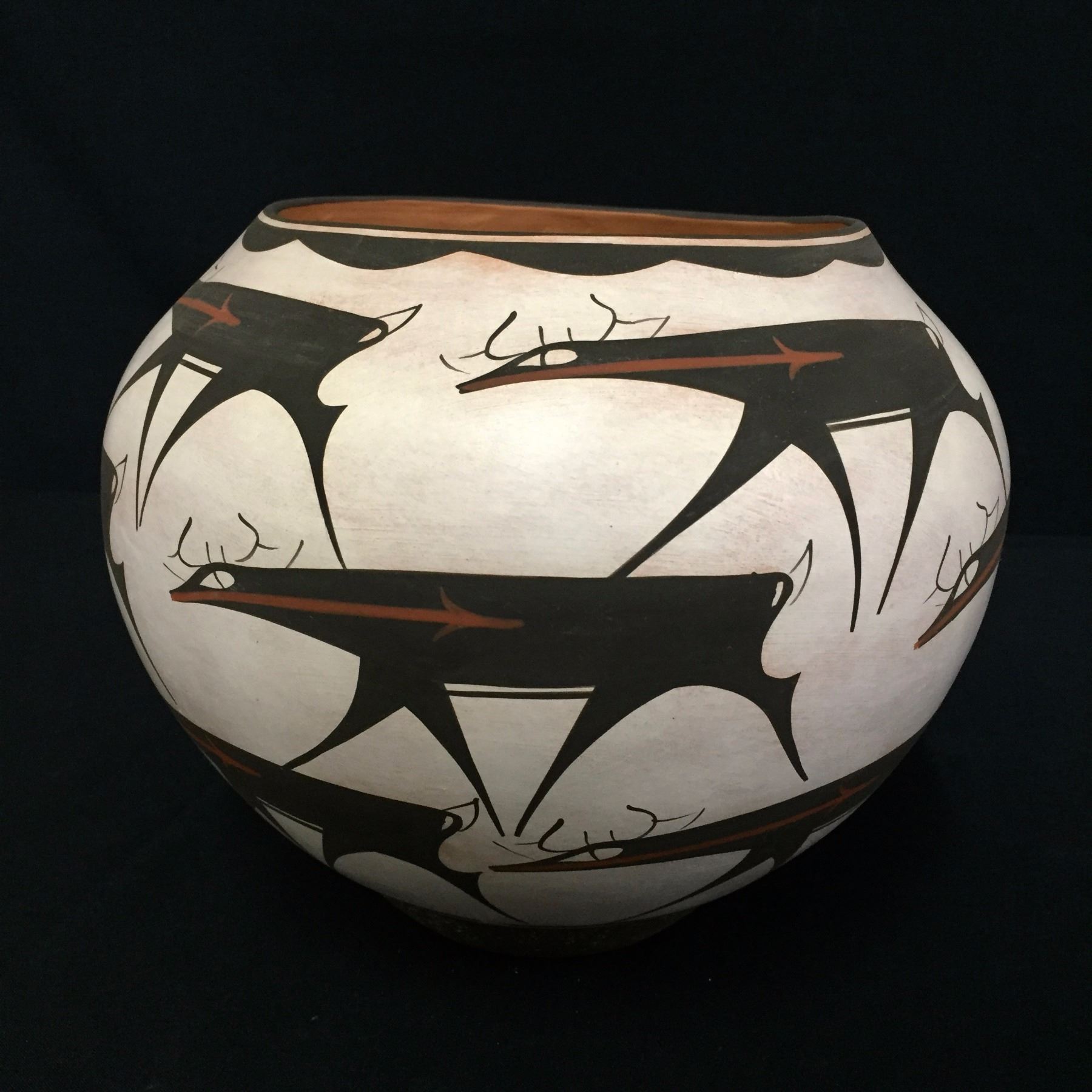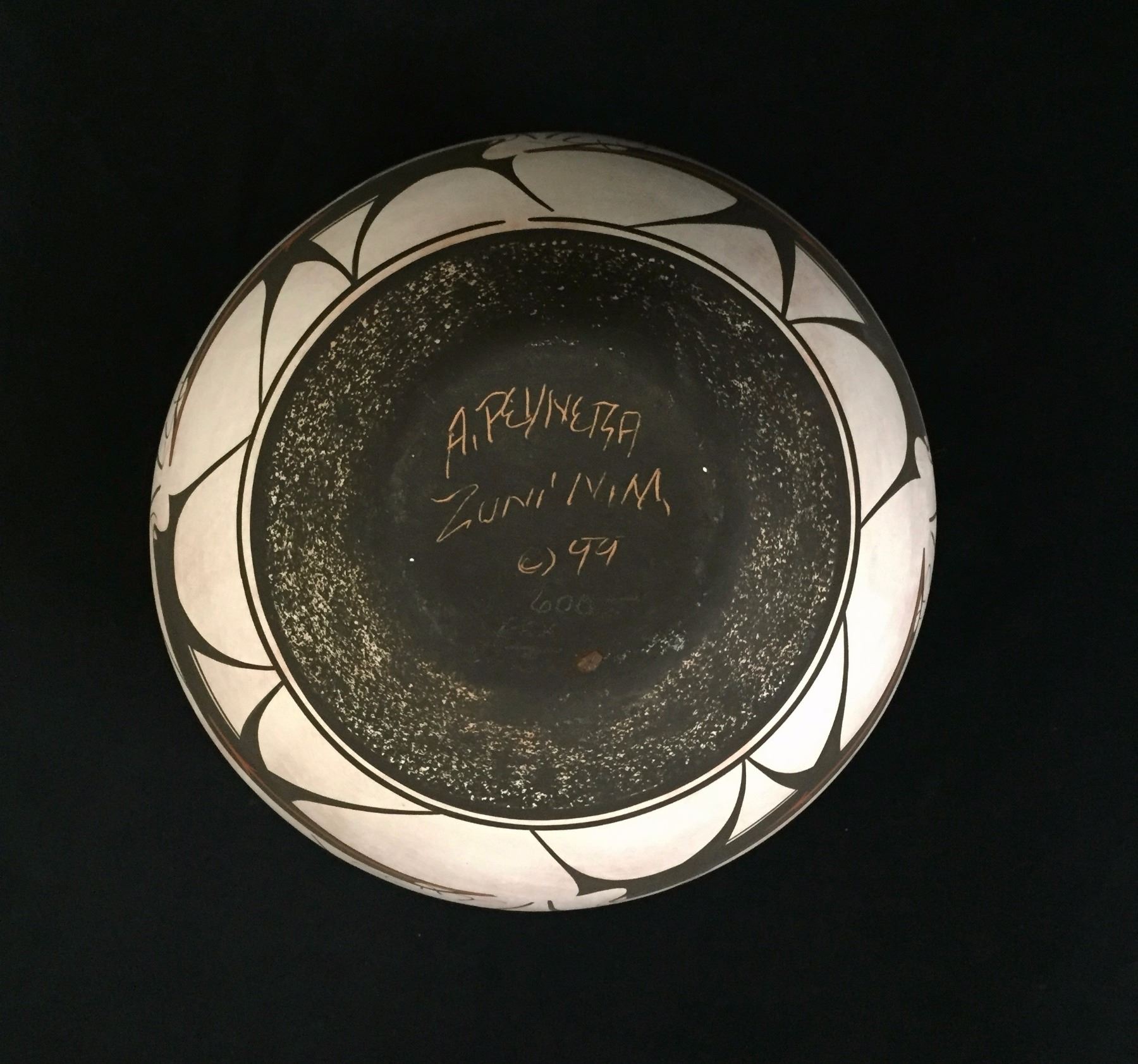 Maker: Anderson Peynetsa, Zuni. Approx. Age: 1999. Size: Measures 9 1/2” w x 8” tall. Additional Info: A nice, handmade Zuni pot, signed. Condition: Good for it’s age. Please look closely at the pictures - they are an important part of our description. Shipping: There will be a $10 handling / packaging fee for shipping this lot. The actual cost of postage will be added on top of that.